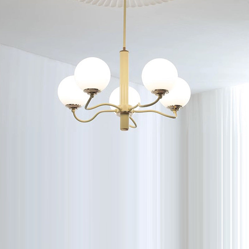 Modern Mid-Century Iron Spherical Glass Shade 4/6-Light Chandelier For Living Room