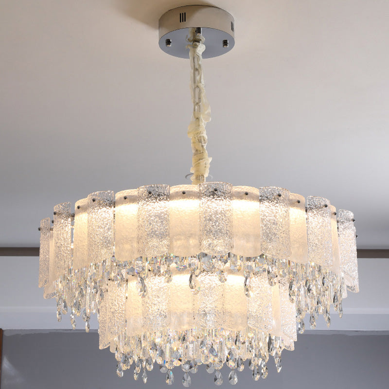 Traditional French Round Ripple Metal Crystal Glass LED Chandeliers For Living Room