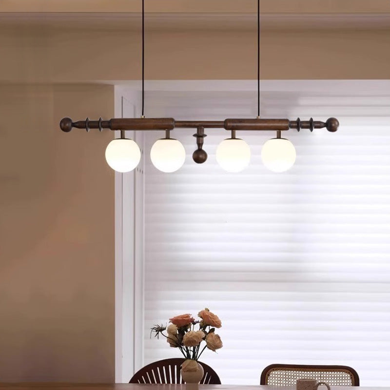 Traditional Chinese Magic Bean Long Orb Glass Wood 4-Light Island Light Chandelier For Living Room