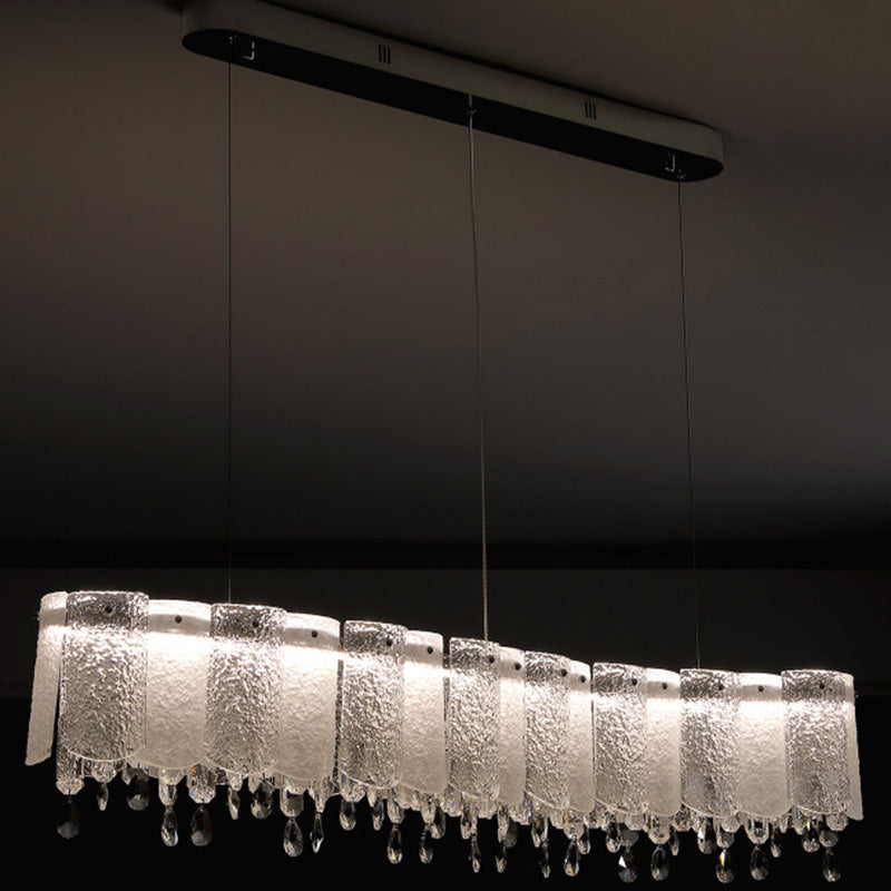 Traditional French Rectangular Oval Ripple Metal Crystal Glass LED Chandeliers Island Light For Dining Room