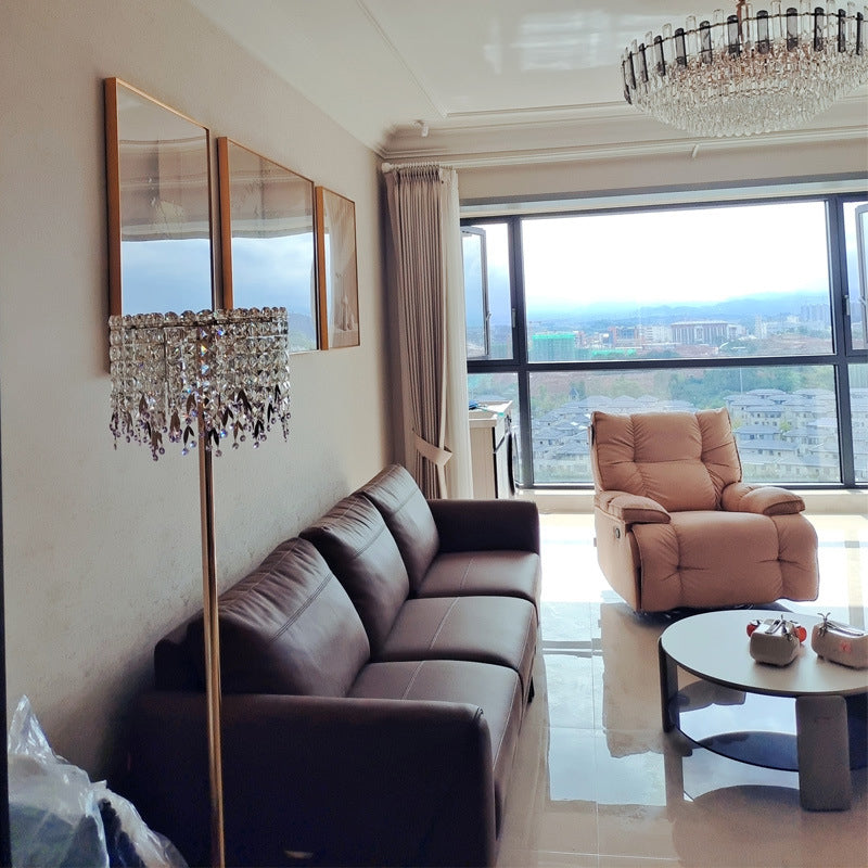 Traditional Luxury Round Crystal Stainless Steel Iron 1-Light Standing Floor Lamp For Bedroom