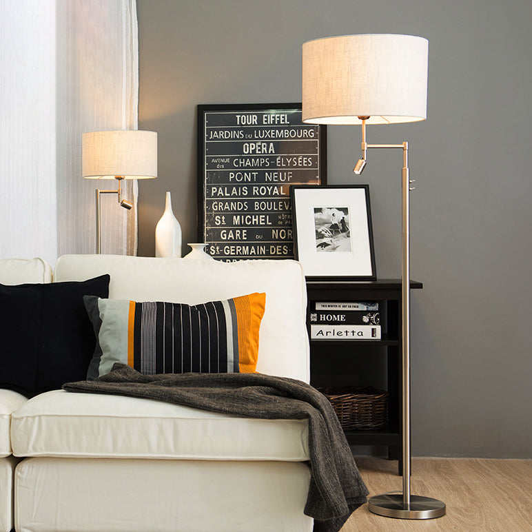 Traditional Vintage Cylinder Fabric Iron 2-Light Rotatable Spotlight Standing Floor Lamp For Home Office
