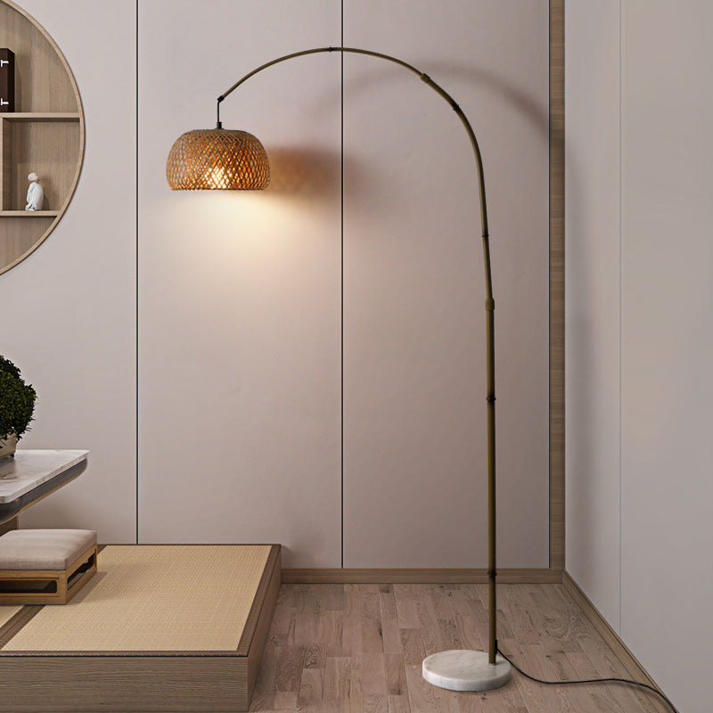 Contemporary Retro Bamboo Weaving Shade Arc 1-Light Standing Floor Lamp For Living Room