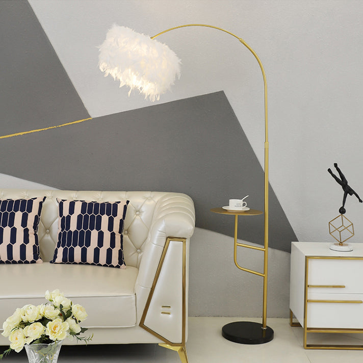 Contemporary Nordic Marble Iron Feather 1- Light Standing Floor Lamp For Living Room