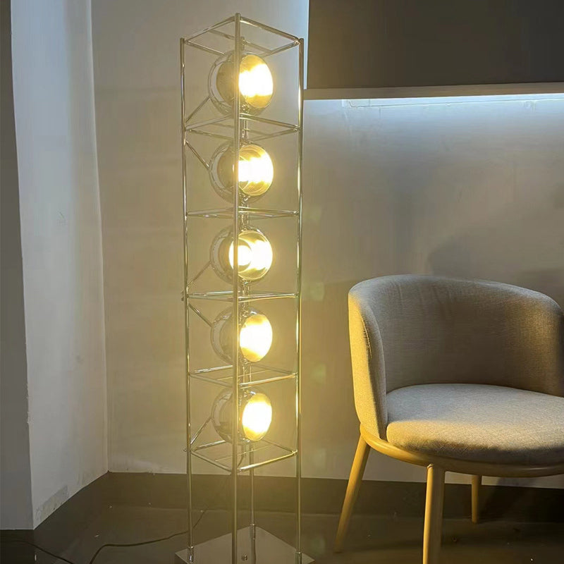 Traditional Vintage Rectangular Glass Stainless Steel LED Standing Floor Lamp For Living Room