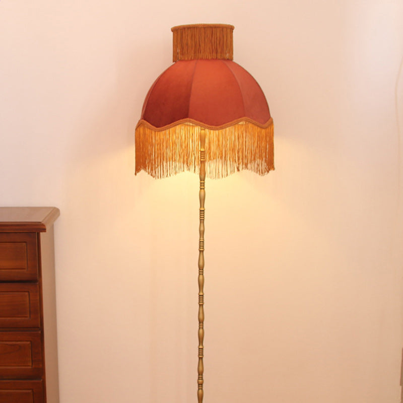 Traditional Vintage Cylinder Semicircle Tassel Fabric Copper 1-Light Standing Floor Lamp For Living Room