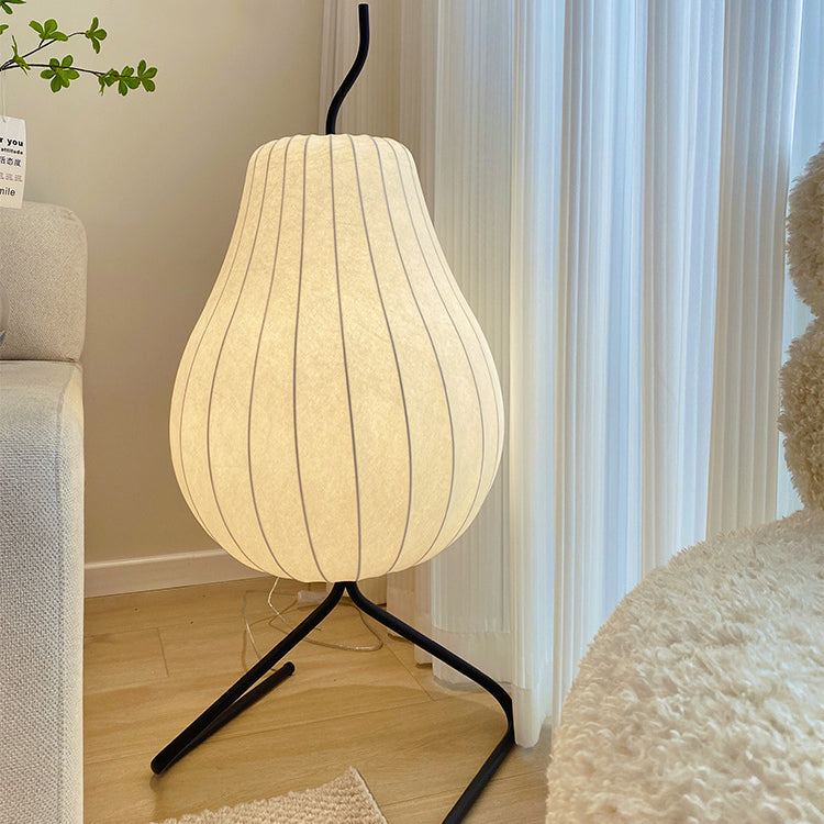 Traditional Japanese Pear Silk Shade Iron 1-Light Standing Floor Lamp For Living Room