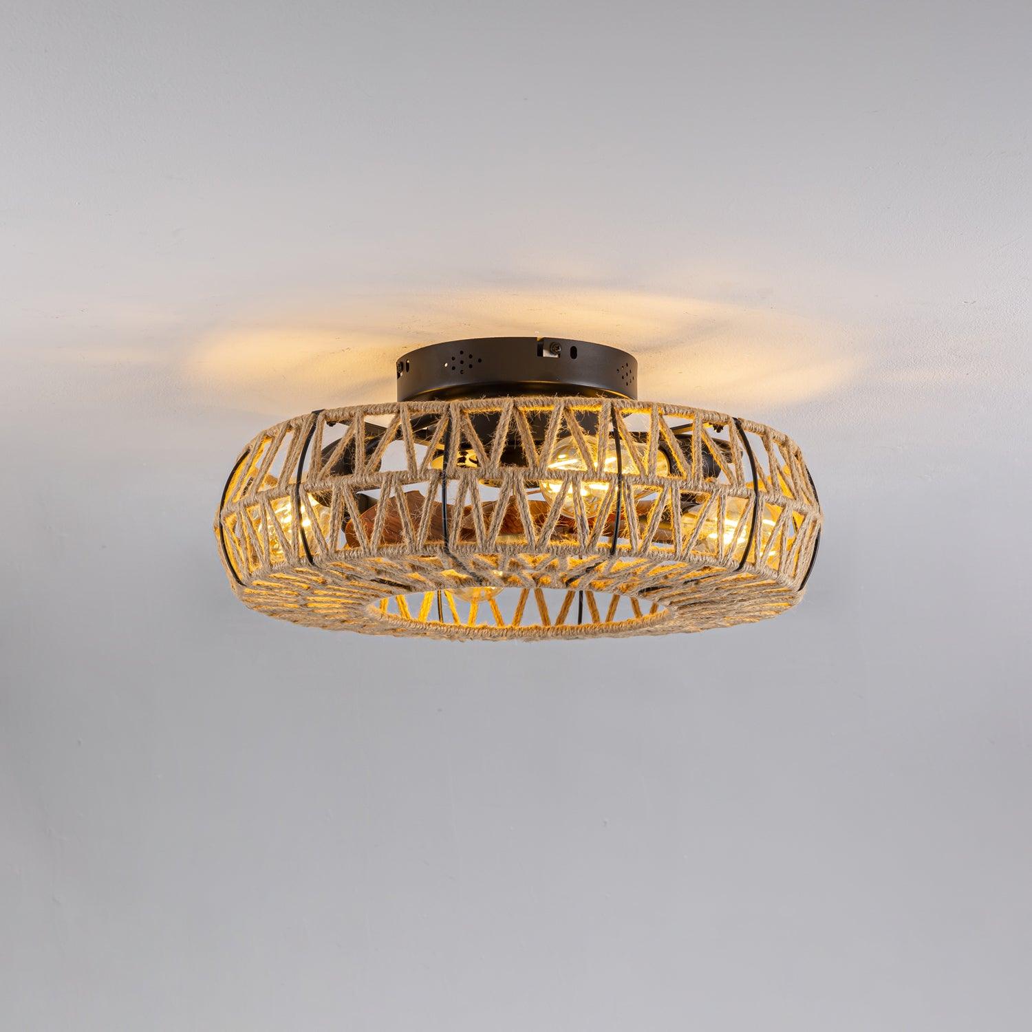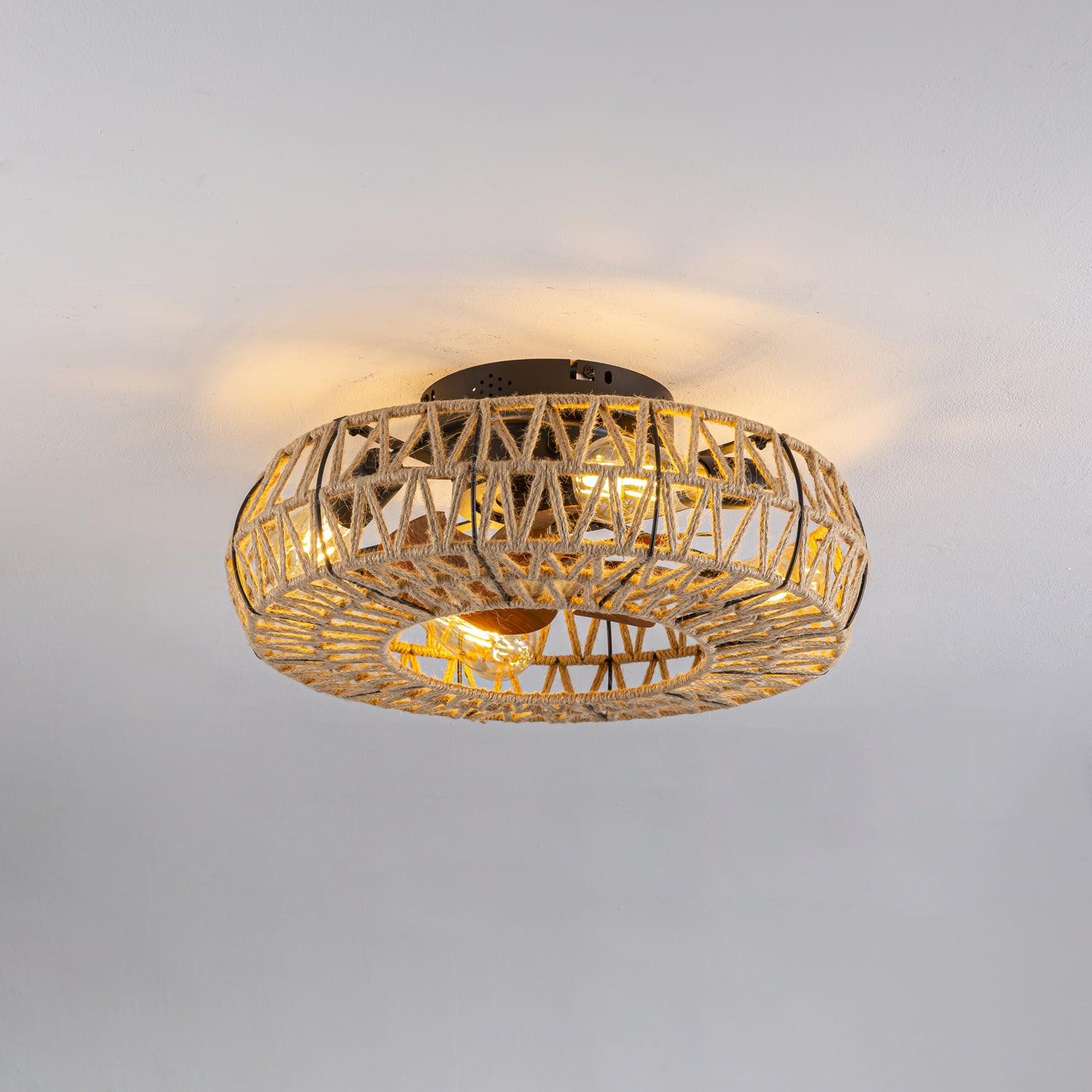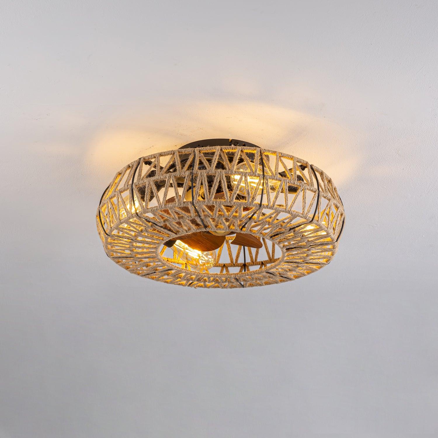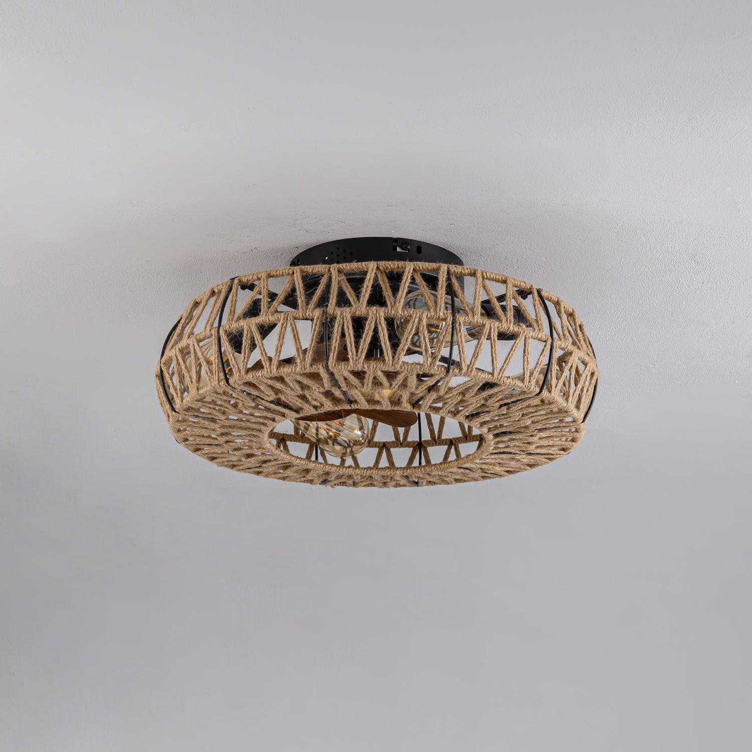This 19.7" Twine Ceiling Fan Lamp is an elegant addition to any room. Its handmade twine weaving is extremely durable, and its fan-inspired design creates maximum airflow to keep a room cool. Improve your space with this sophisticated and stylish lamp.