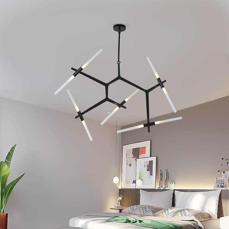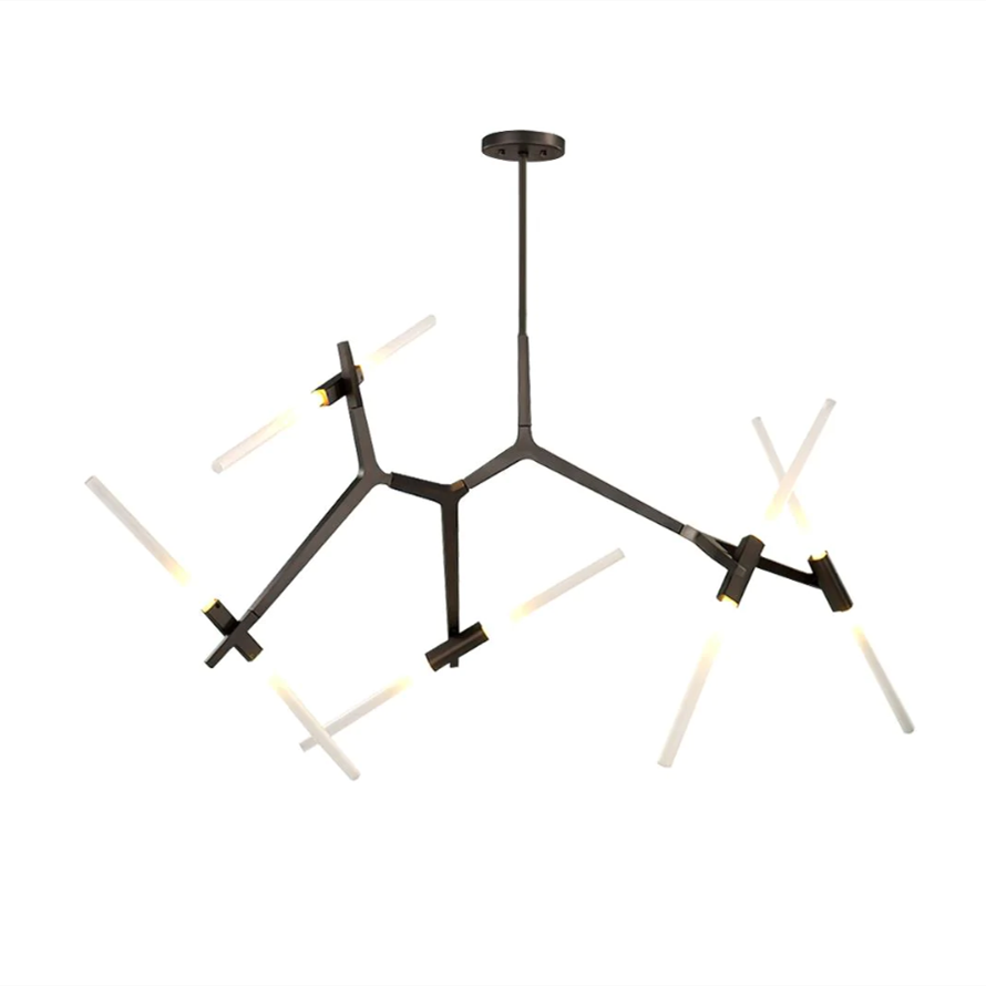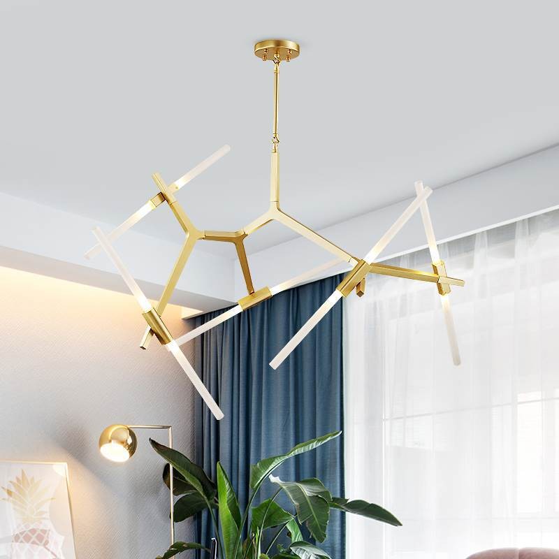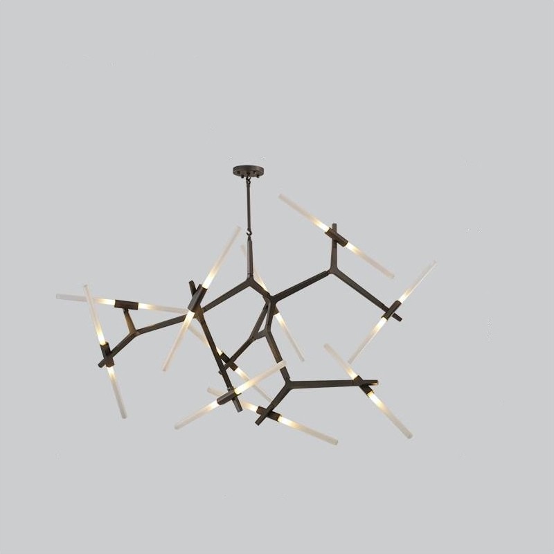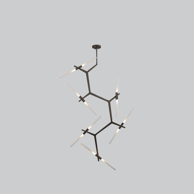 Originally conceived as a candelabra, Agnes takes its inspiration from the fictional heroine of the same name, a worker in the world's oldest profession during the 1849 California Gold Rush. The modular system would allow Agnes easy setup in her makeshift "workspace." In this version, glowing glass tubes replace the candles. Articulated joints allow the glass to be arranged in a multitude of ways. Agnes Chandelier is very popular with its special appearance design. The light it emits is warm and comfortable. Ideal for bedroom and living room. You can choose the right product according to your needs.