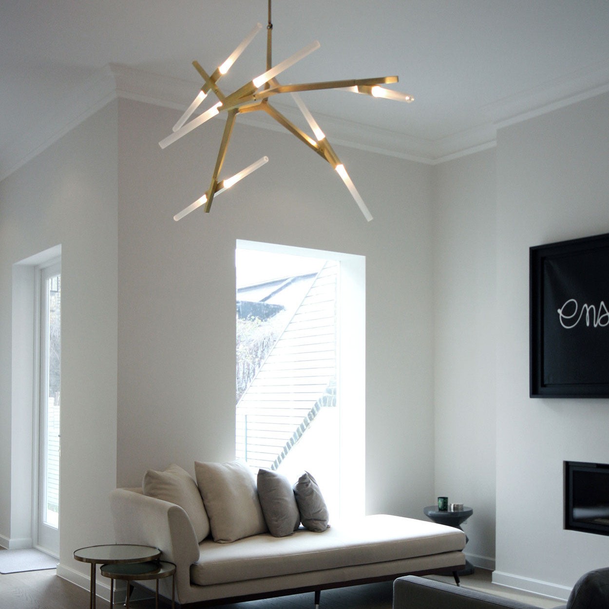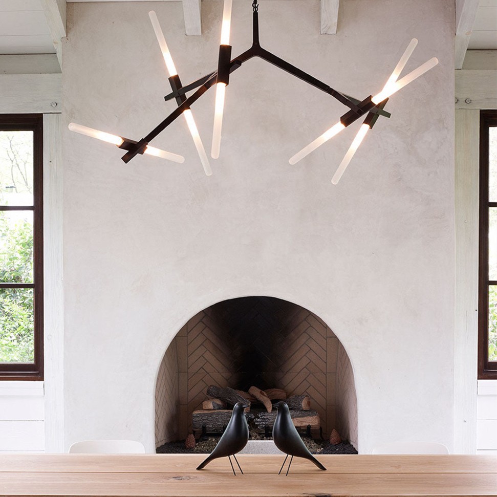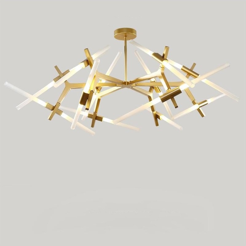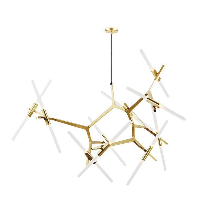 Originally conceived as a candelabra, Agnes takes its inspiration from the fictional heroine of the same name, a worker in the world's oldest profession during the 1849 California Gold Rush. The modular system would allow Agnes easy setup in her makeshift "workspace." In this version, glowing glass tubes replace the candles. Articulated joints allow the glass to be arranged in a multitude of ways. Agnes Chandelier is very popular with its special appearance design. The light it emits is warm and comfortable. Ideal for bedroom and living room. You can choose the right product according to your needs.
