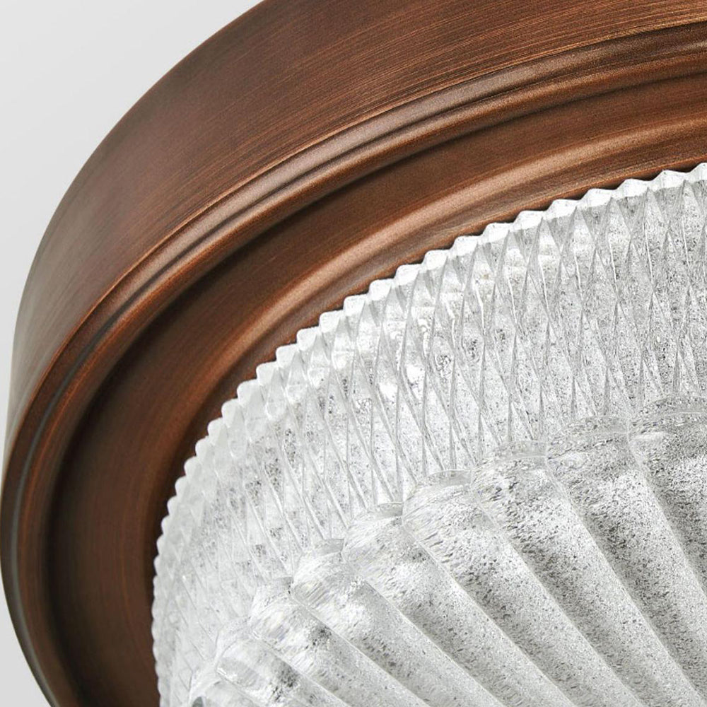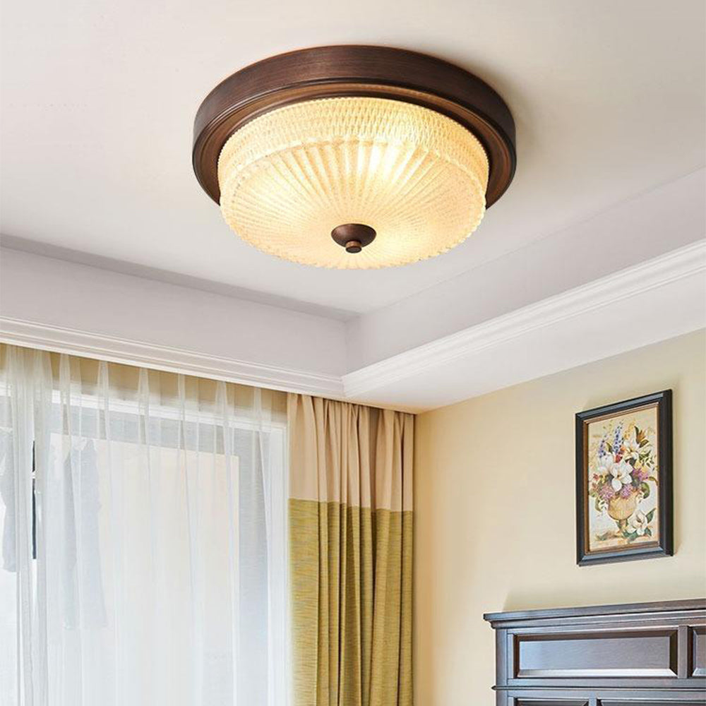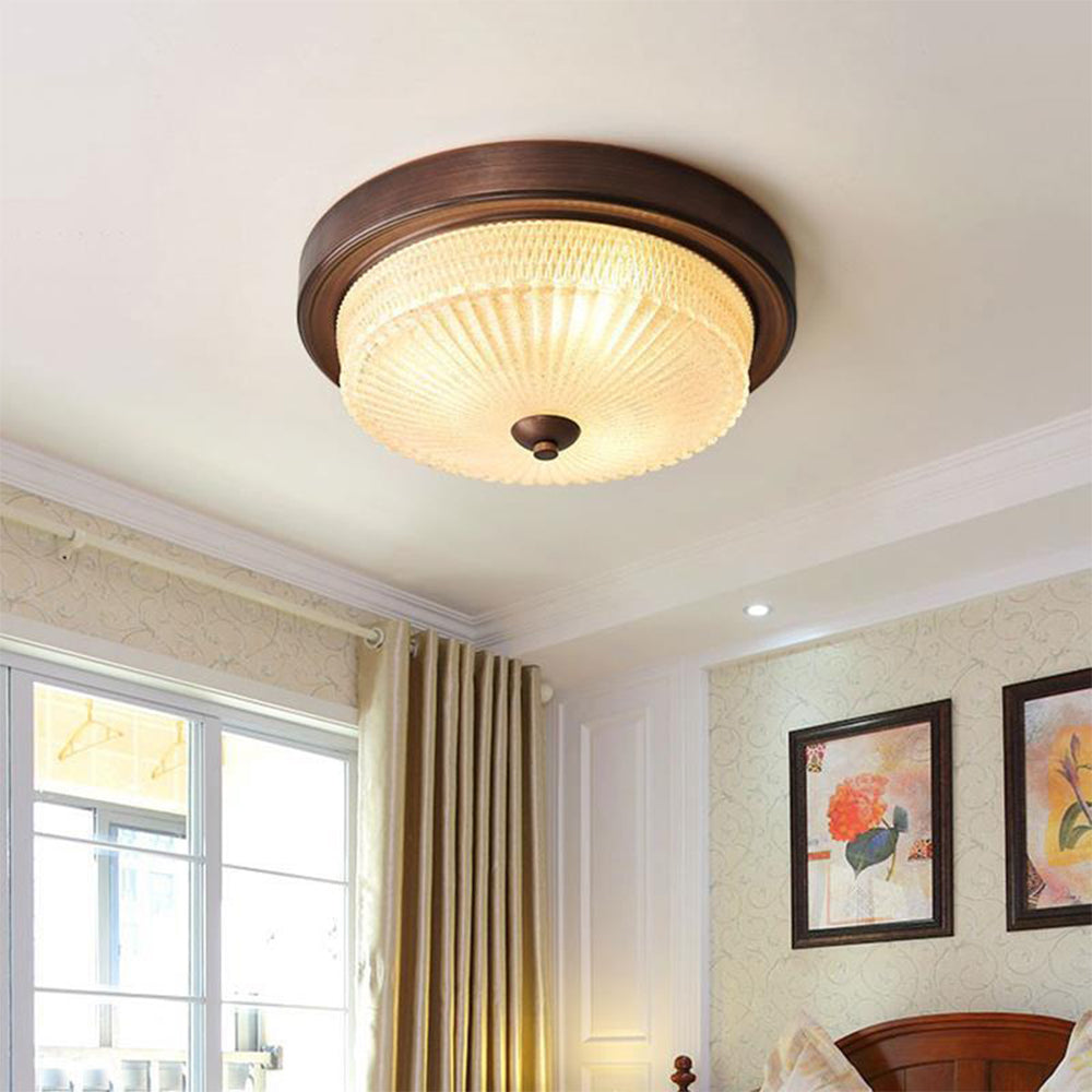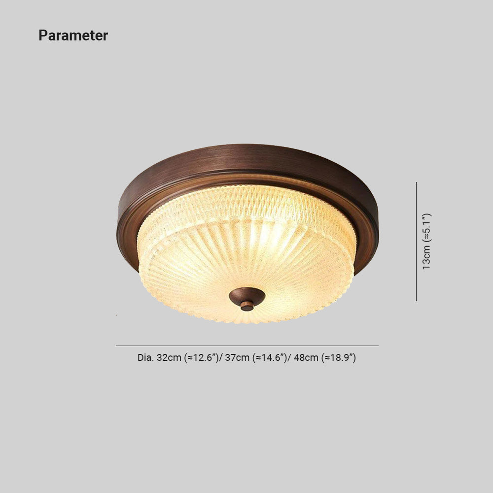 - Available in a rich bronze hue, the Alessio Vintage Round Flush Mount Ceiling Light exudes warmth and sophistication. The bronze finish lends a timeless charm, effortlessly complementing various interior design schemes from traditional to modern. This versatile color choice ensures that the light fixture seamlessly integrates into any room's décor, adding a subtle yet impactful visual element.