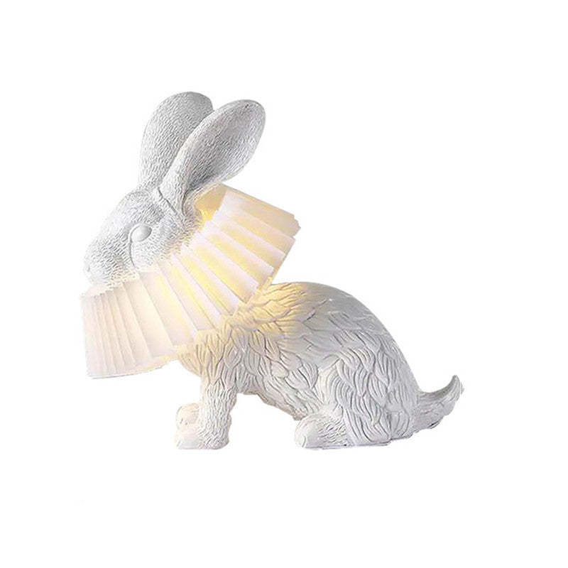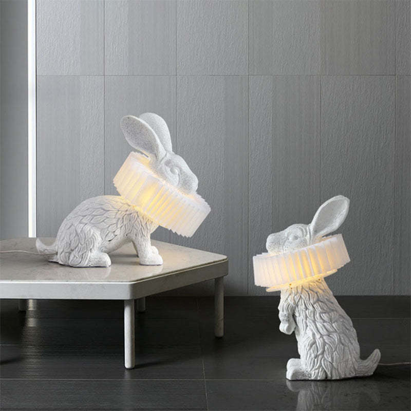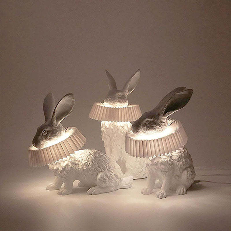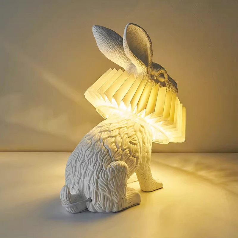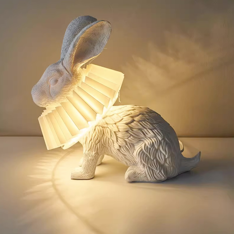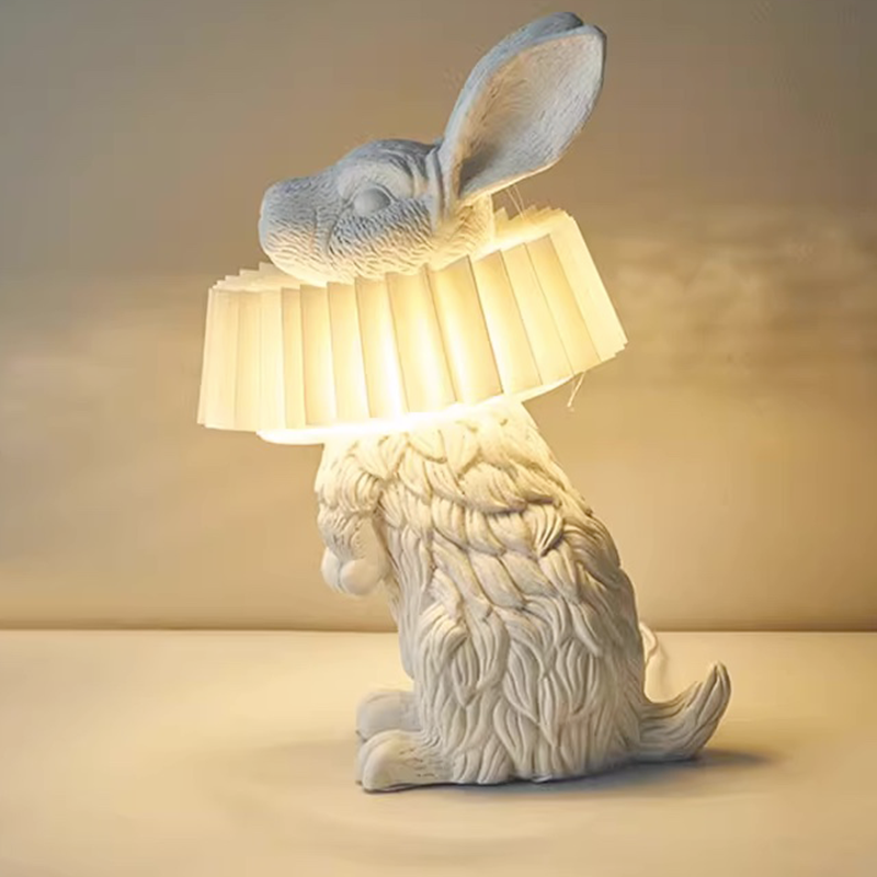 The rabbit lampshade features a unique design with three lovely postures: standing, sitting, and lying, showcasing a creative and adorable style.