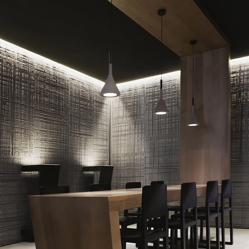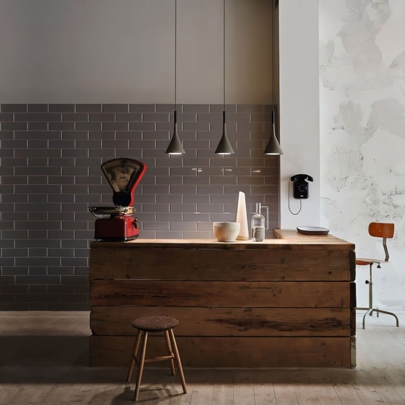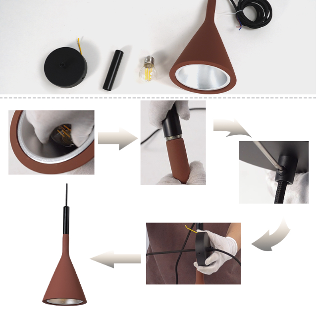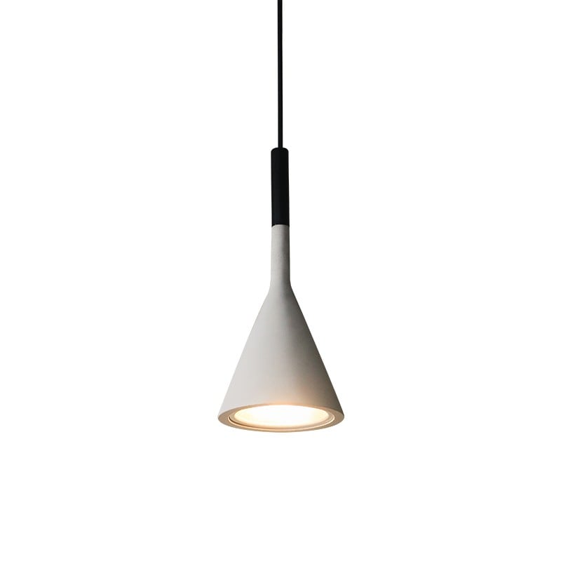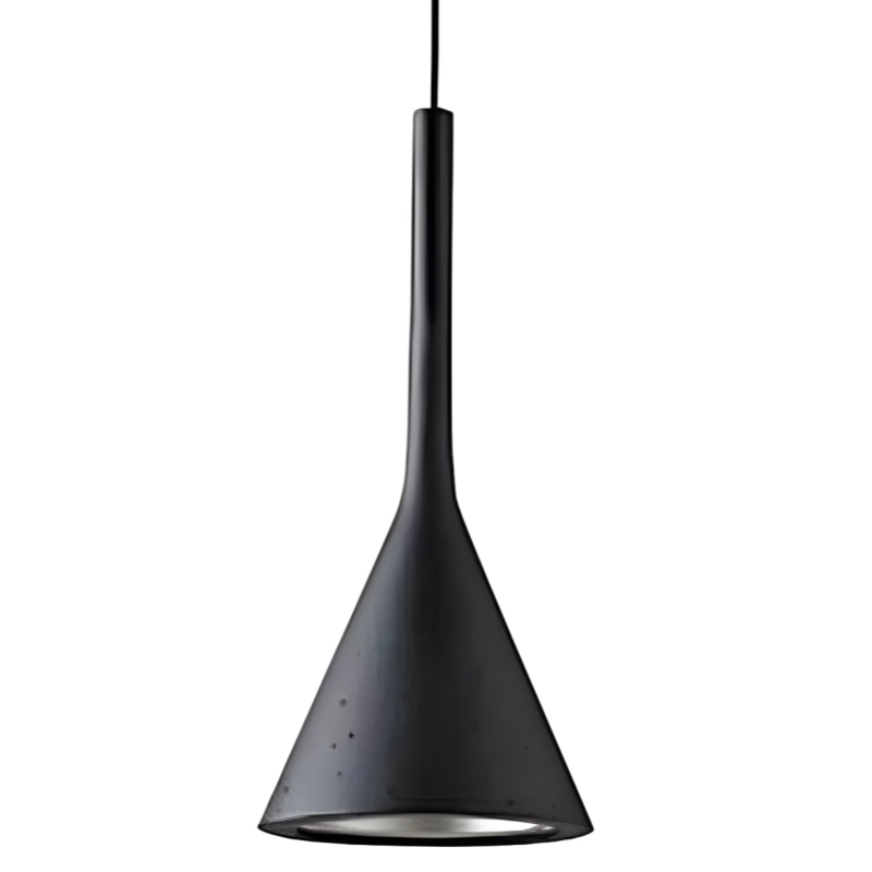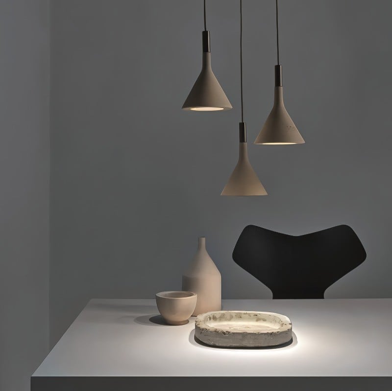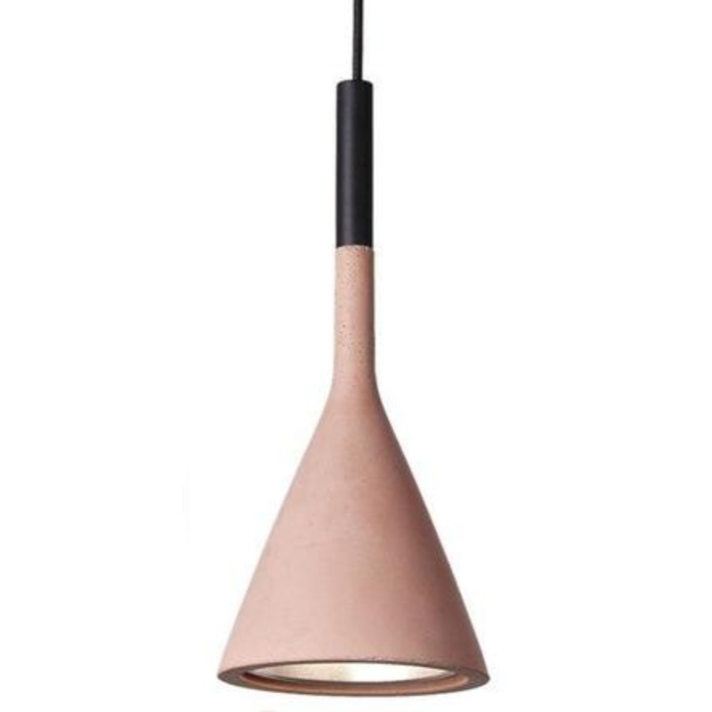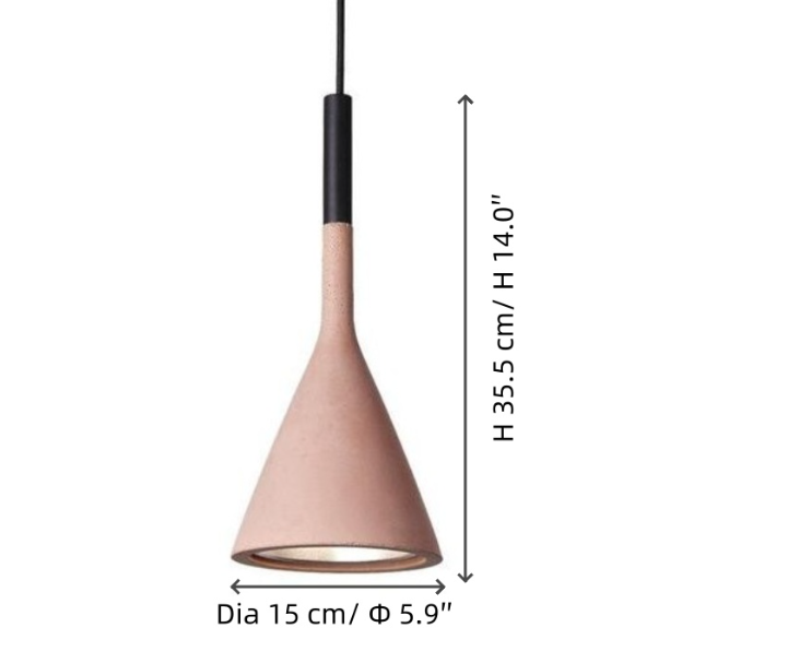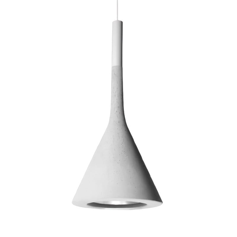 Made of concrete and metal, Aplomb mini trumpet concrete pendant lamp has a distinctive industrial style. The flared lampshade gives the pendant light an eye-catching visual impact. It adds an industrial touch to any space.