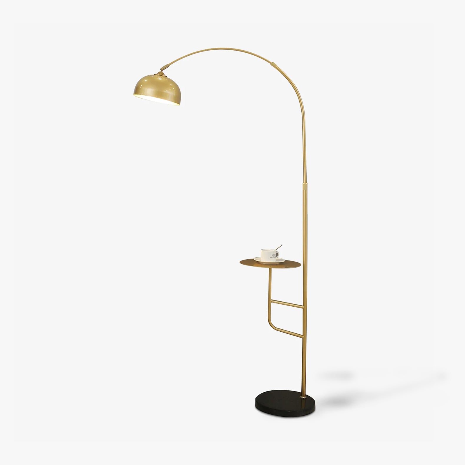 Furthermore, the Arc Bell Floor Lamp is equipped with a practical tray positioned in the middle of the lamp stand. This tray serves as a convenient storage space for books, magazines, glasses, or other small items, showcasing thoughtful attention to detail.