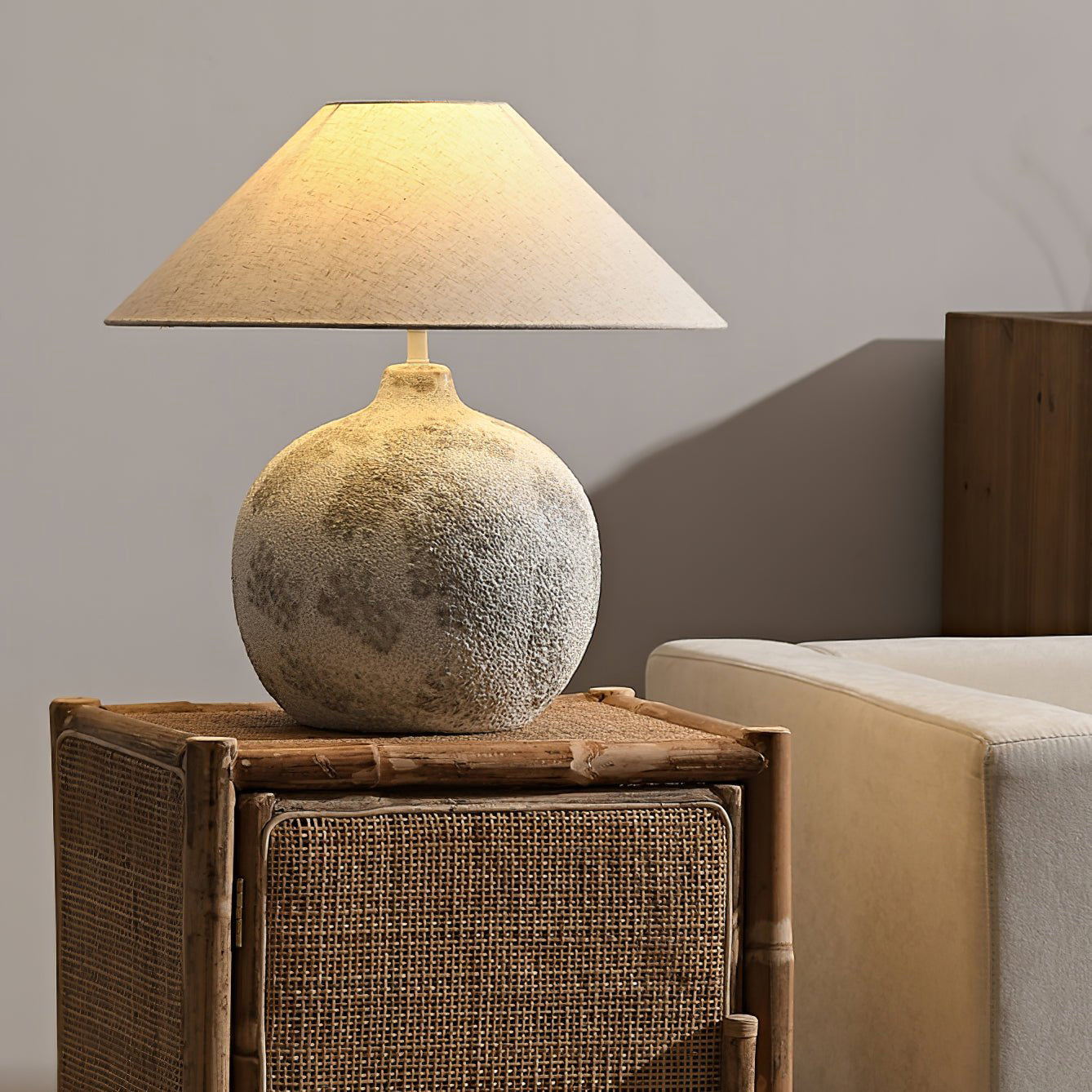 Elevate your home decor with the stunning Arosa table lamp. Its natural, textured ceramic base adds visual interest to any room. Pair it with a custom shade for a warm and inviting atmosphere. Expertly designed to complement any aesthetic.