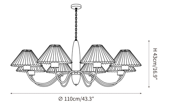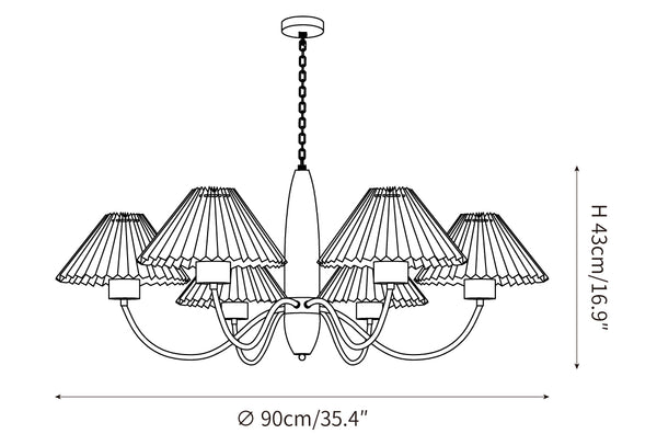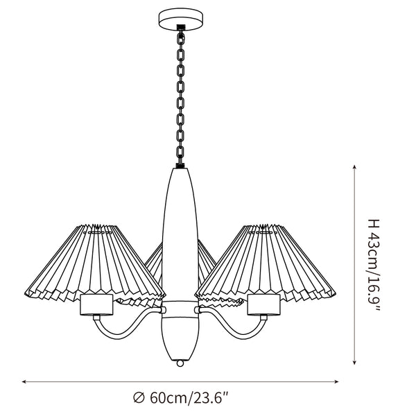 Add elegance to your space with the Asquith Chandelier. The pleated PC lampshade provides soft lighting, while the walnut-colored lamp body and copper-colored curved arm add a touch of sophistication. Elevate your room with this stunning chandelier.