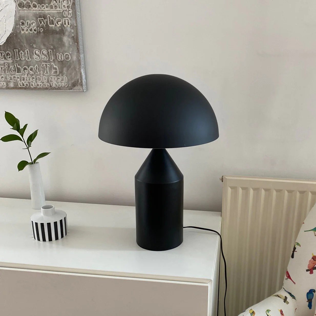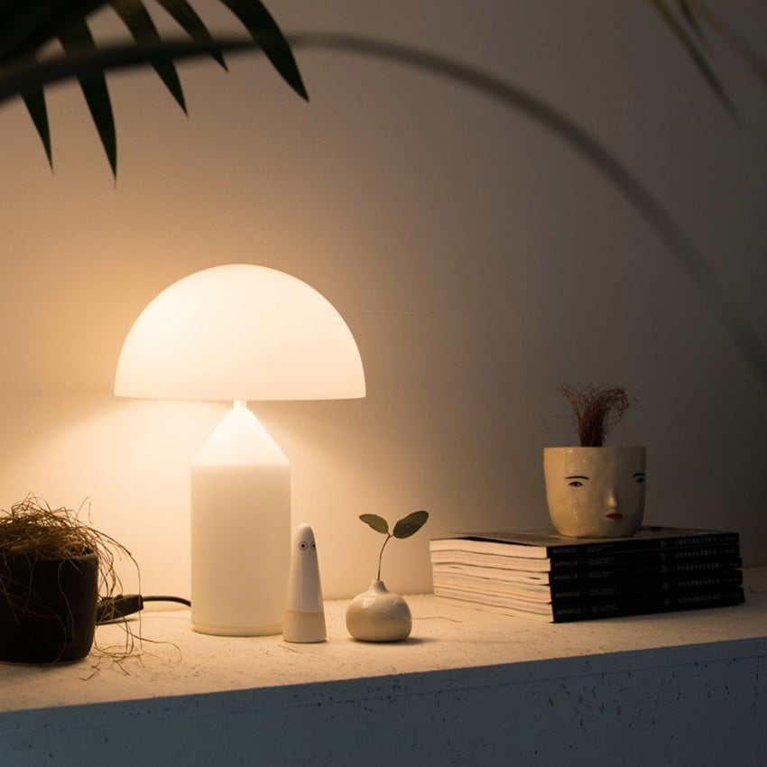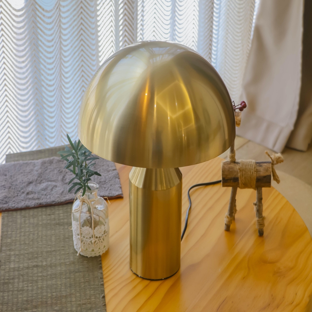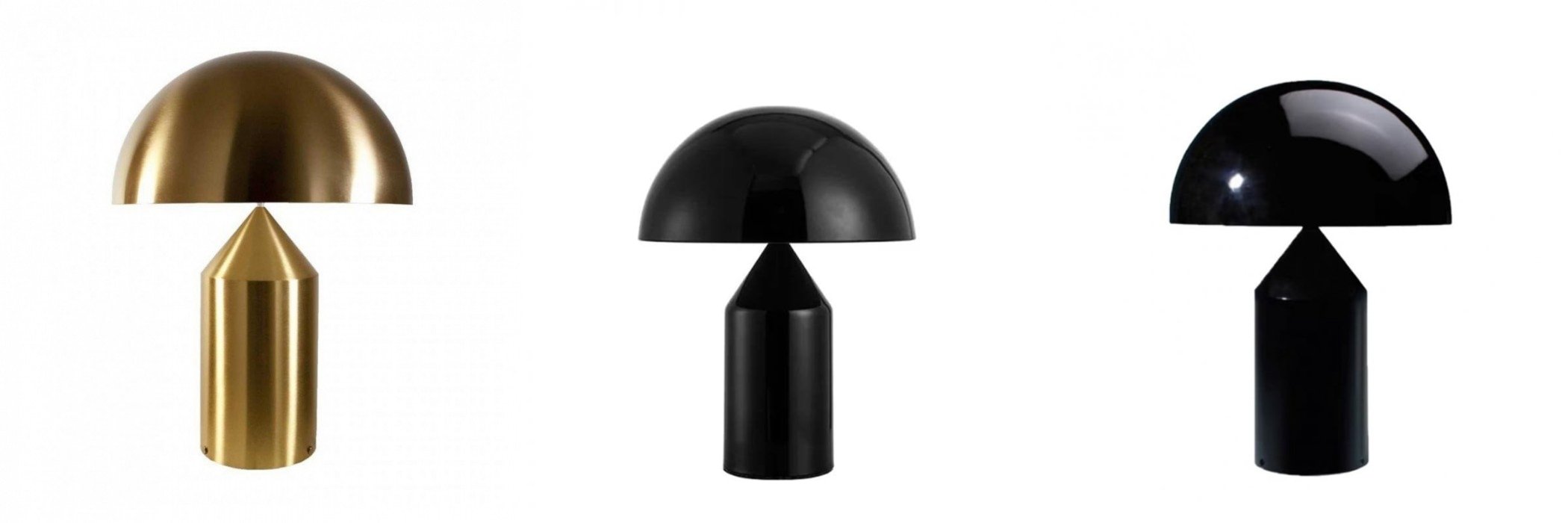 Our Atollo metal mushroom lamps are available in three different sizes and in different finishes such as gold, white or black metal. Our mushroom table lamps are popular for their unique design. The lamp emits a warm and pleasant glow. It is perfect for bedrooms and living rooms. You can choose the right modern table lamp according to your needs.