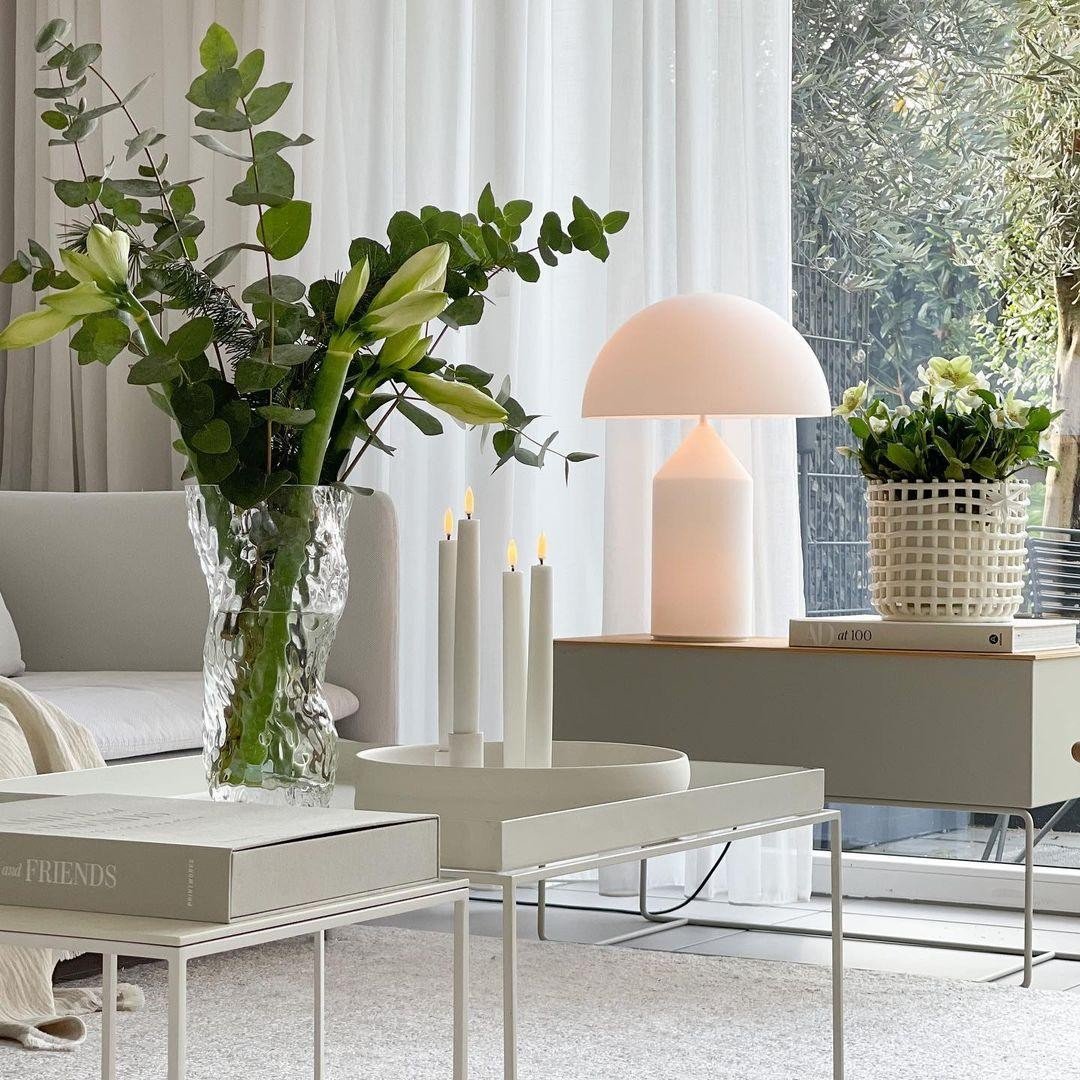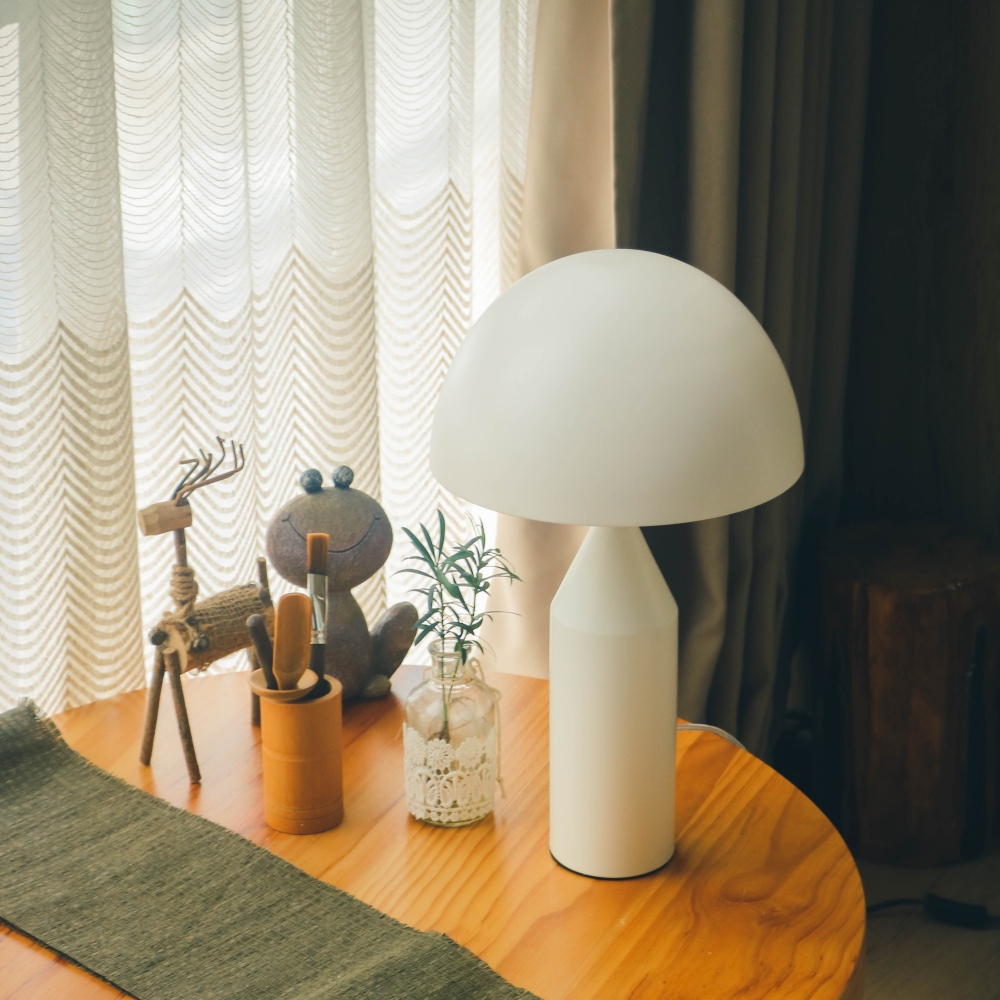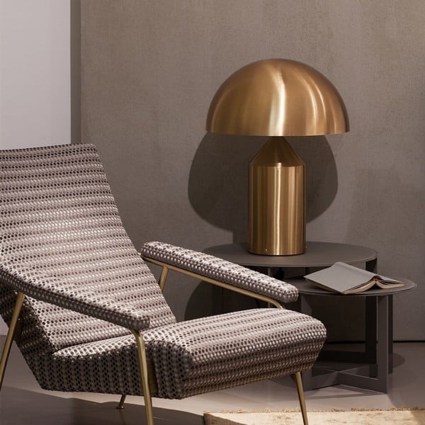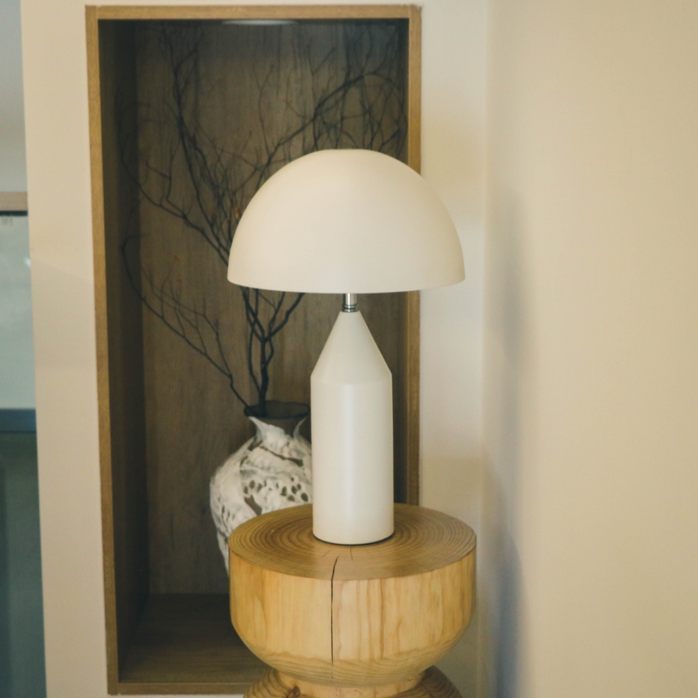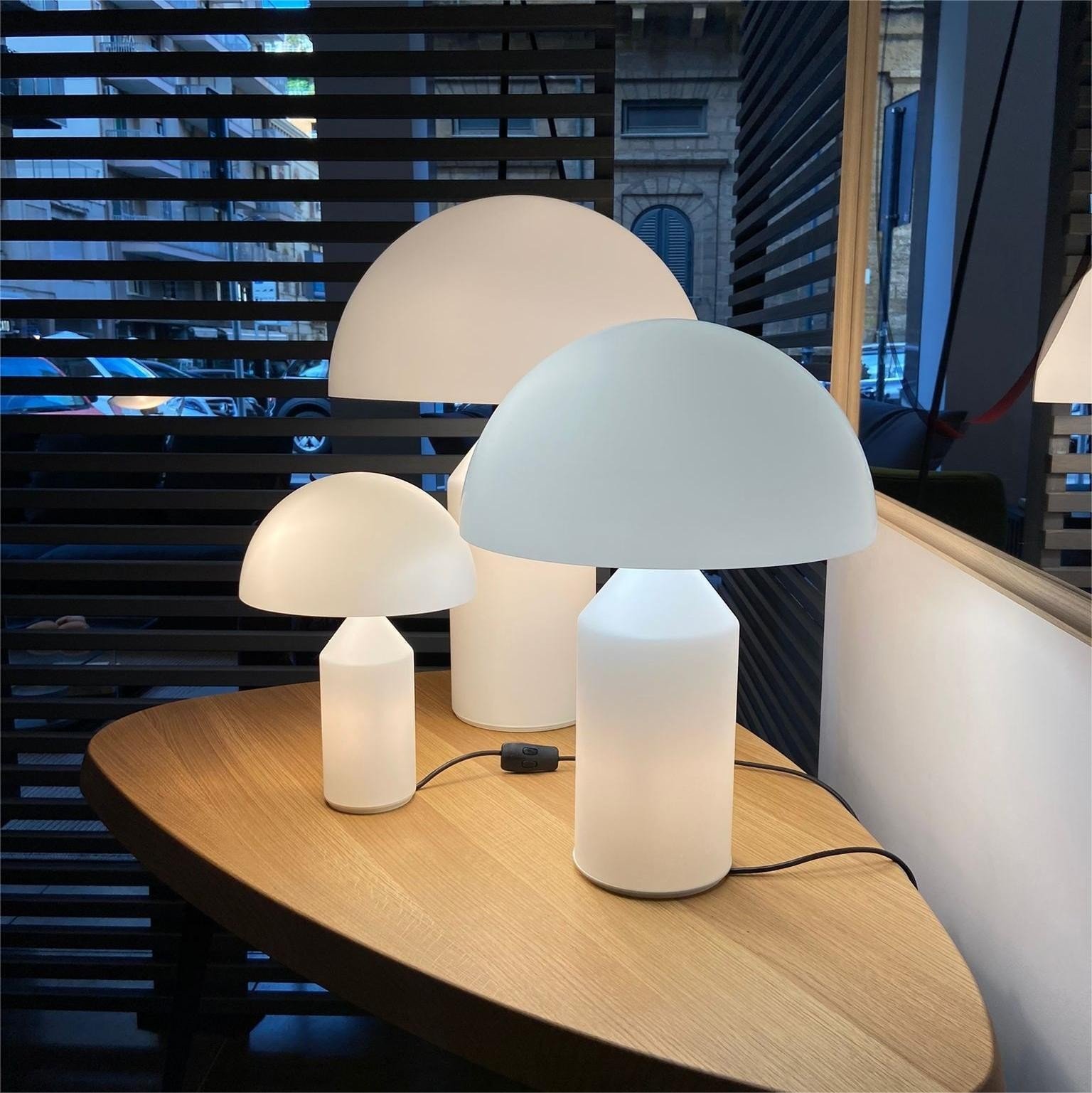 Our Atollo metal mushroom lamps are available in three different sizes and in different finishes such as gold, white or black metal. Our mushroom table lamps are popular for their unique design. The lamp emits a warm and pleasant glow. It is perfect for bedrooms and living rooms. You can choose the right modern table lamp according to your needs.