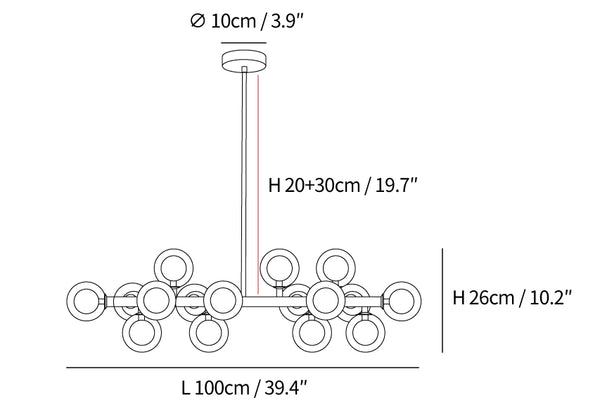 16 Heads Size: L 100cm x H 50cm / L 39.4″ x H 19.7″ (G4 bulbs*16)