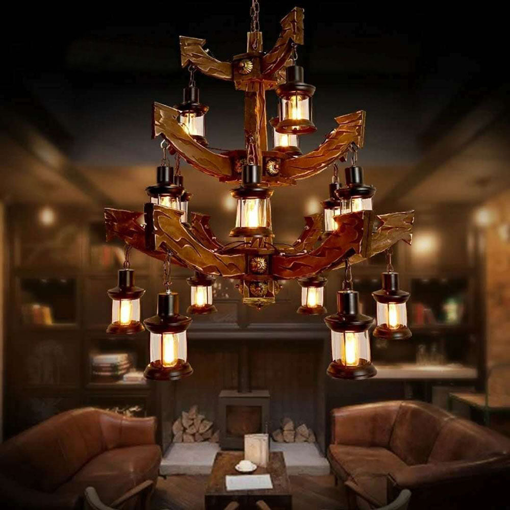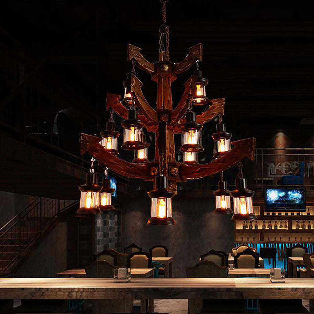 Austin Retro 14 Lantern Wood/Metal Chandelier Living Room/Bedroom