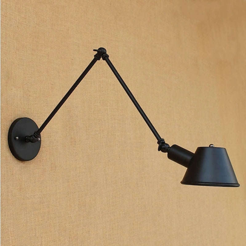 - This wall lamp boasts a unique and versatile design. Its defining feature is the long linear metal arm that's not only adjustable but also rotatable. This innovative shape allows you to direct light precisely where you need it, making it an ideal choice for reading or task lighting. At the end of the arm, you'll find a cone dome lampshade that completes the lamp's distinctive silhouette, adding a touch of character to your living space.