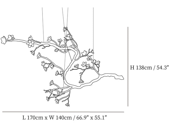 Experience the beauty and vitality of nature with our Branch Flower Chandelier. Inspired by a fruit tree found in a wild jungle, this chandelier will bring a touch of the outdoors into your home. Its natural shape adds a unique and captivating element to any room. Say goodbye to boring decor and hello to a vibrant and inspiring atmosphere.