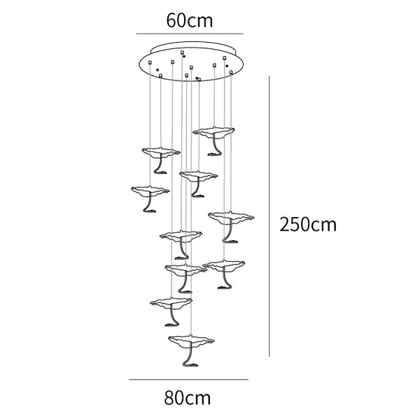 10 heads Size: Dia 80cm x H 250cm / ∅ 31.5″ x H 98.4″