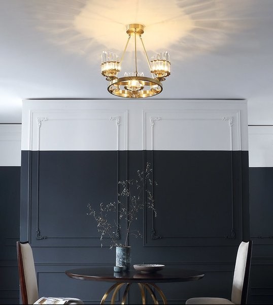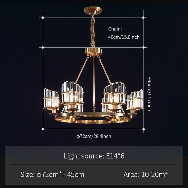 The chandelier is in contrast with the rich warmth of the transparent K9 crystal to give a sense of design. This classic streamlined swivel feature has soft curved Brass support bars, each supporting a glass shade with its own light source. Use with the E14 bulb to get the most out of vintage effects. Brass/Crystal Chandelier is very popular with its special appearance design. The light it emits is warm and comfortable. Ideal for bedroom and living room. You can choose the right product according to your needs.- Please note: Your payment does not include customs duties, local taxes or any other import costs.