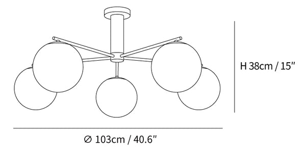 The Briette Chandelier is an elegant statement piece designed to add sophistication to any décor. Its 60s-inspired style features an alluring cross frame adorned in glossy gold and white glass globes, creating a timelessly chic look. Add a touch of timeless glamour to your space with the Briette Chandelier.