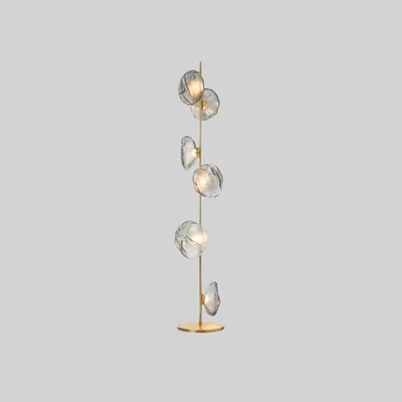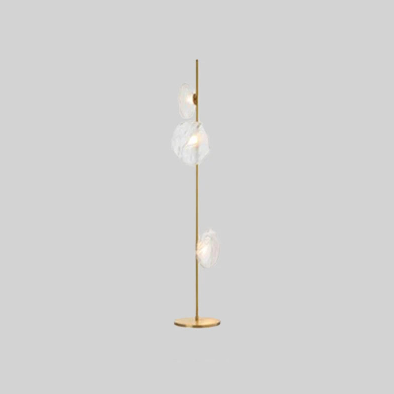 - This floor lamp shade is made of glass material and is shaped like a trumpet flower, which is sequentially connected to a metal lamp column, providing a rich sense of design.