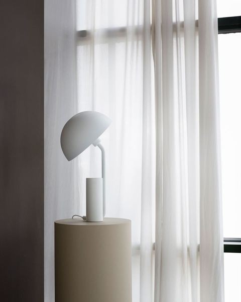 Cap is a functional table lamp with an adjustable shade. The design is playful with lots of personality. Cap consists of a mix of iconic, geometric shapes such as circles and cylinders. This gives the lamp a streamlined look, while the sloping pole that holds the socket and shade makes the expression welcoming and relaxed.The white inner side of the shade reflects the light, while the rotatable shade makes it possible to direct the light in any way you want to. This makes it functional both as a reading lamp, for spreading a lot of light and for creating a cozy lighting atmosphere. The Cap offers a palette of fashionable color tones that can complement your existing decor and can serve as an eye-catcher in a neutrally styled room. The lampshade can be moved around, letting you direct the light. Delivered with 2 m textile cord with switch.