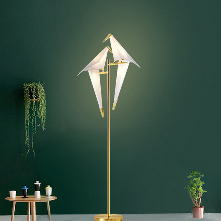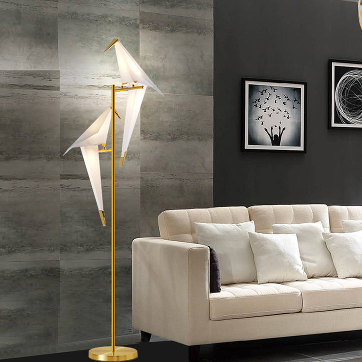 Contemporary Creative Bird Iron PP LED Standing Floor Lamp For Living Room