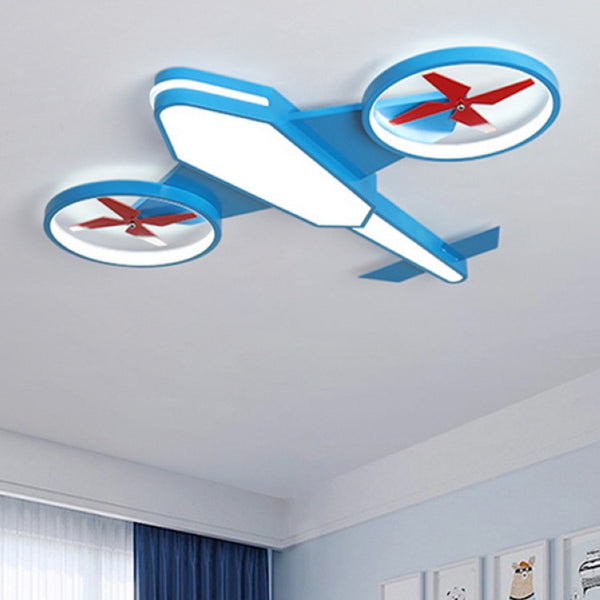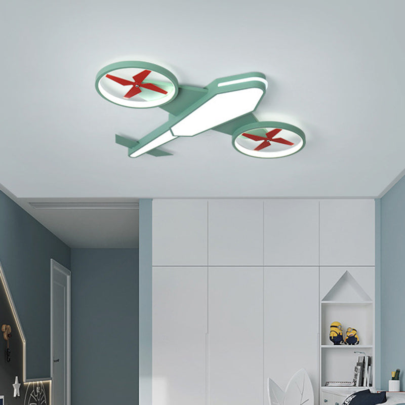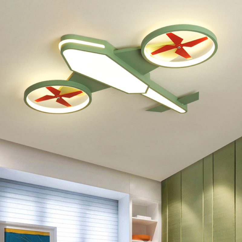 Contemporary Creative Cartoon Airplane Iron Acrylic LED Flush Mount Ceiling Light For Bedroom