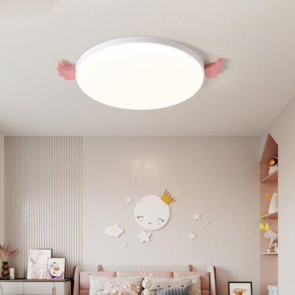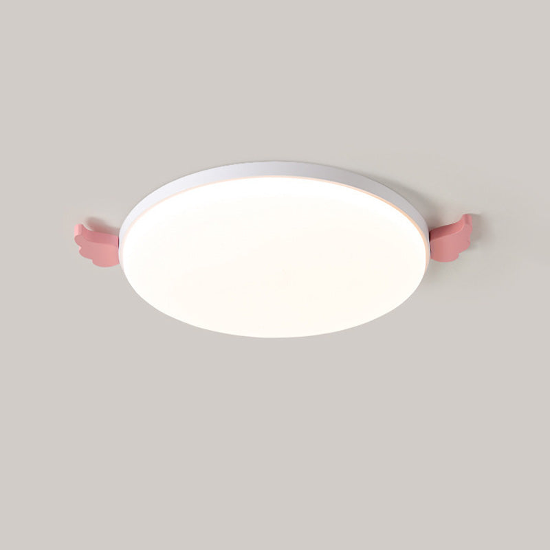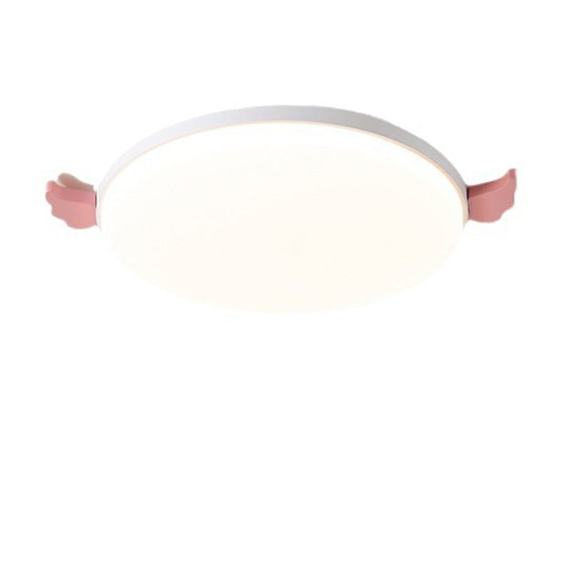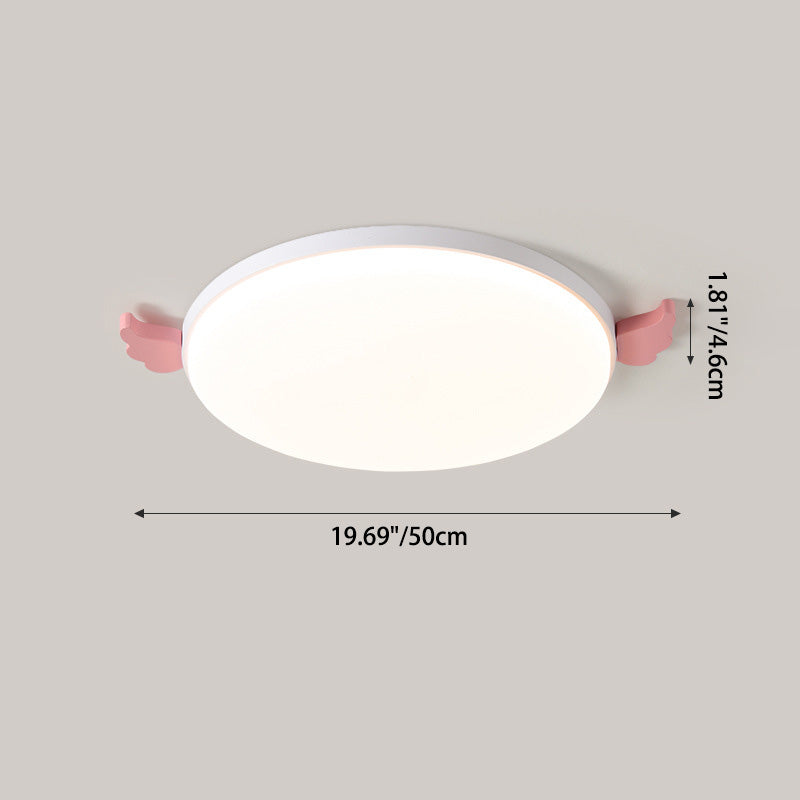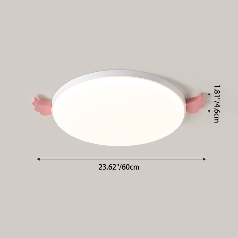 Contemporary Creative Round Small Wings Acrylic Wood Iron LED Flush Mount Ceiling Light For Living Room