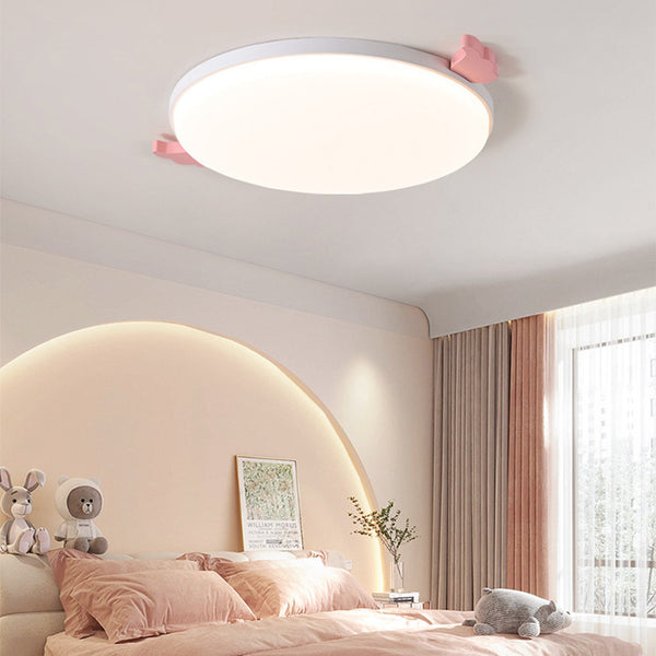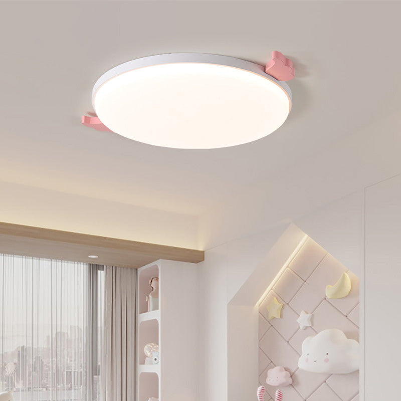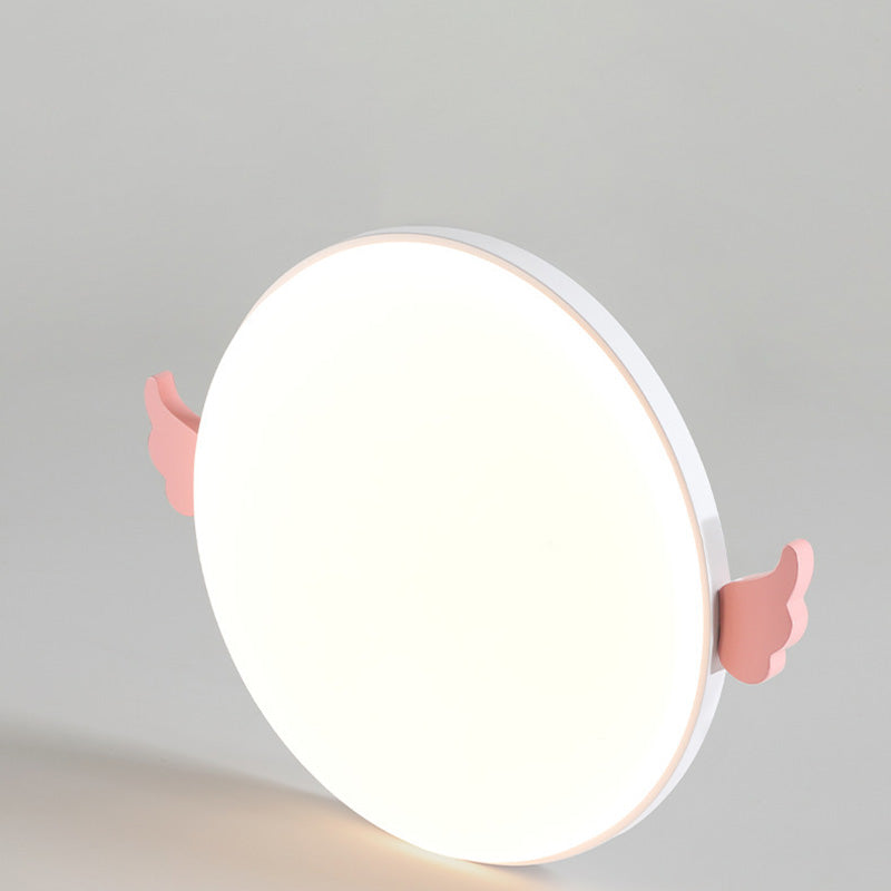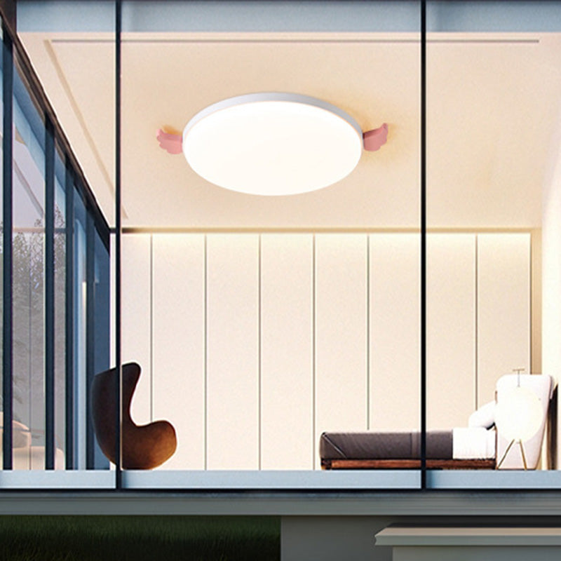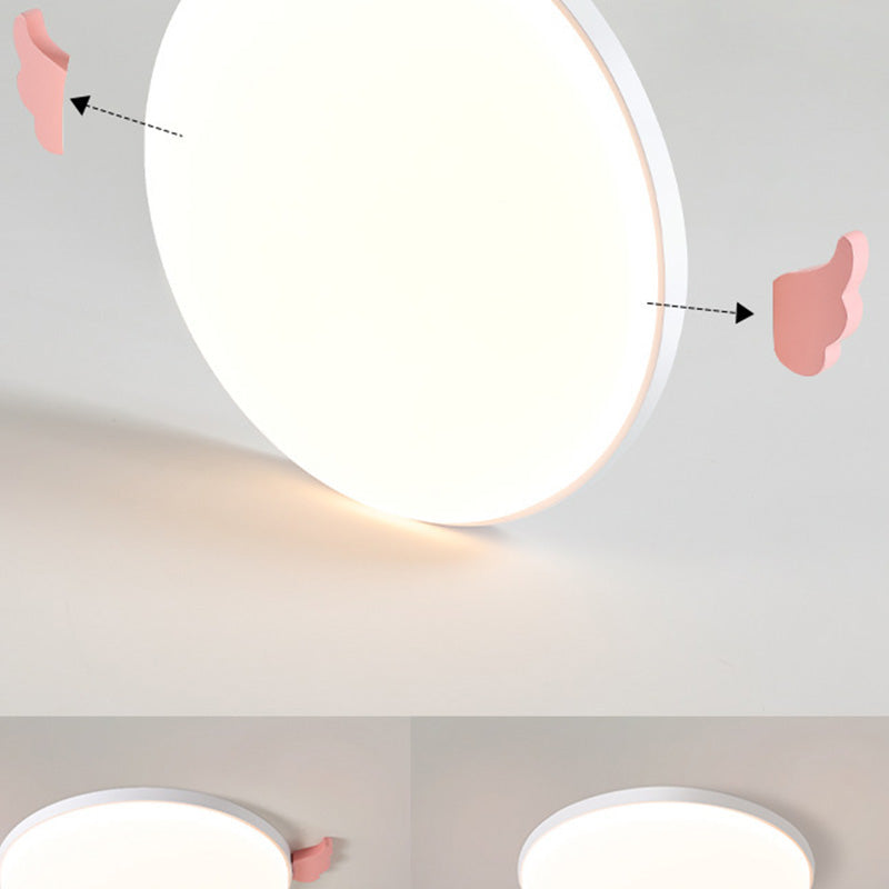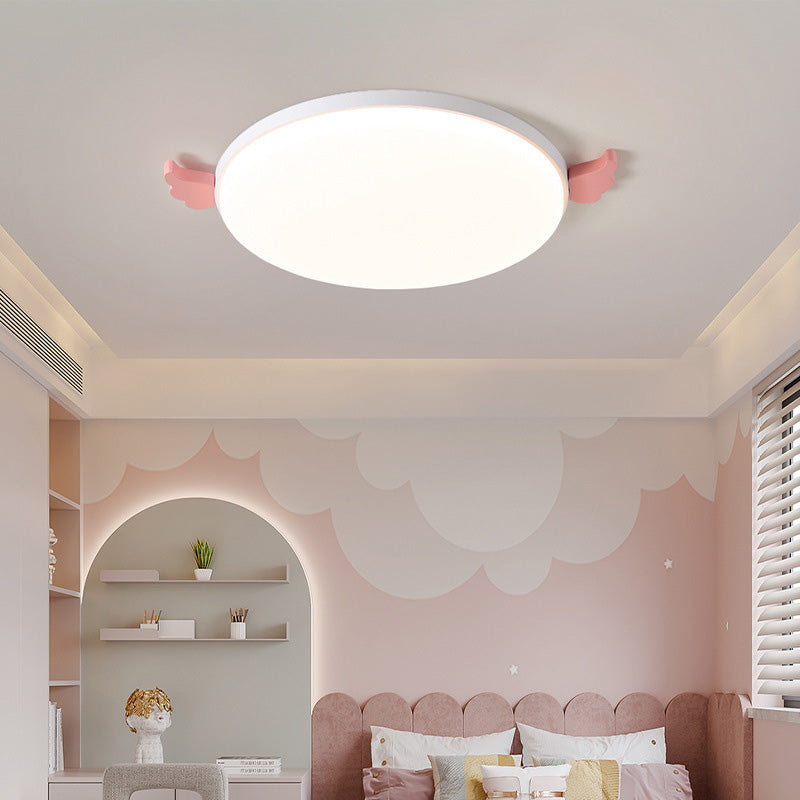 Contemporary Creative Round Small Wings Acrylic Wood Iron LED Flush Mount Ceiling Light For Living Room