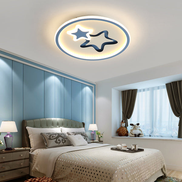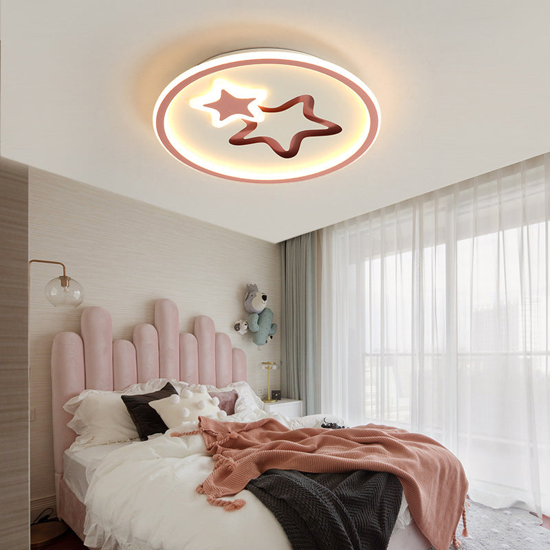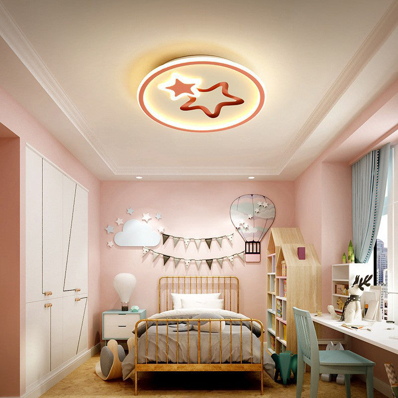 Contemporary Creative Round Star Cartoon Iron Acrylic LED Flush Mount Ceiling Light For Bedroom