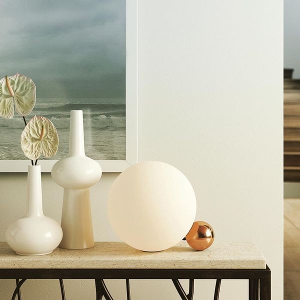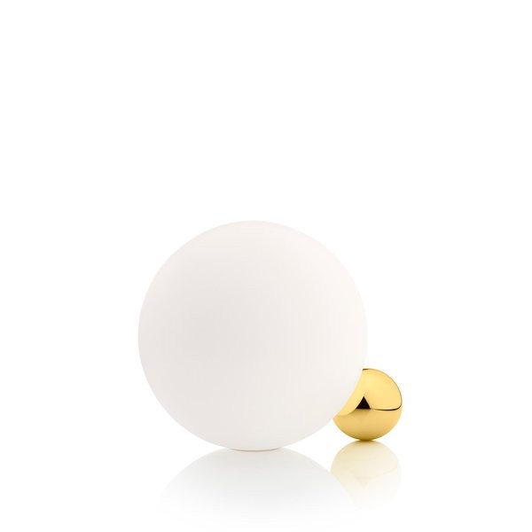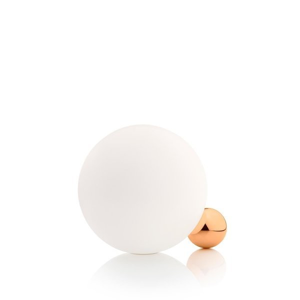 Copycat Table Lamp fixture comprising an aluminium sphere machined from solid and then gold-coated with 24 K gold. Blown glass opal diffuser. LED light source with switch on the power cable. Copycat is a table lamp and was designed by Michael Anastassiades in 2015. It is made of blown glass. It designed with diffused light, consisting of two spheres simulating a delicate and poetic balance, a lightweight design and inspired by the spherical shape. The smaller sphere, contains a LED light source that radiates the light beam within the larger sphere thus ensuring a homogeneous and uniform light. Copycat is available in four finishes: 24 carat gold plating, polished aluminum, black,aluminium and copper.- Please note: Your payment does not include customs duties, local taxes or any other import costs.