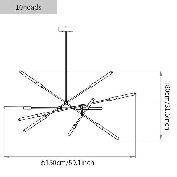 - 10heads size: Dia 150cm x H 80cm/∅ 59.1″ x H 31.5 in