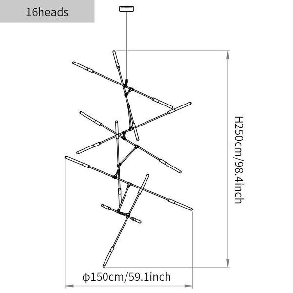 - 16heads size: Dia 150cm x H 250cm/∅ 59.1″ x H 98.4″