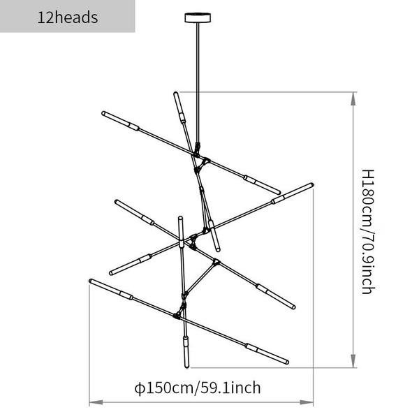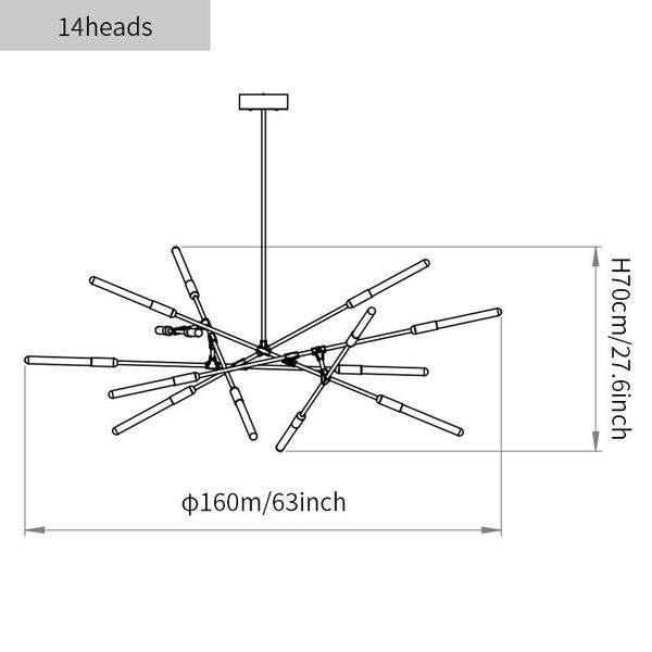- 12heads size: Dia 160cm x H 63cm/∅ 63″ x H 24.8 in