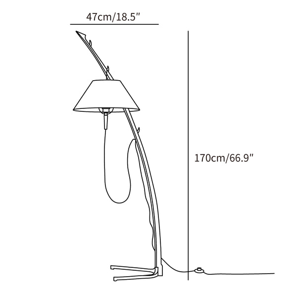 Introducing the Dornstab Floor Lamp - an artistic and functional addition to any space. With its adjustable shade, enjoy the perfect lighting for reading, working, or creating a cozy ambiance. Crafted from high-quality wood and metal, this lamp effortlessly blends into any interior design. Experience the balance and simplicity of nature with its unique fishing lamp silhouette and retro-style design.