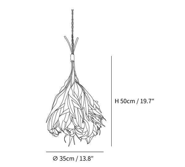 Constructed from genuine, naturally-dried leaves and branches, this chandelier embodies an earthy charm and an artistic spirit. The natural materials are skillfully arranged to allow a gentle play of light and shadow, reminiscent of sunlight filtering through the canopy of a woodland retreat. Each metal support is thoughtfully placed to provide stability with a minimalist appearance, ensuring the focus remains on the natural artistry of the leaves. Ideal for settings that seek to create a cozy, nature-inspired ambiance, this chandelier is not just a source of illumination but a conversation piece that celebrates the raw beauty of the wilderness.