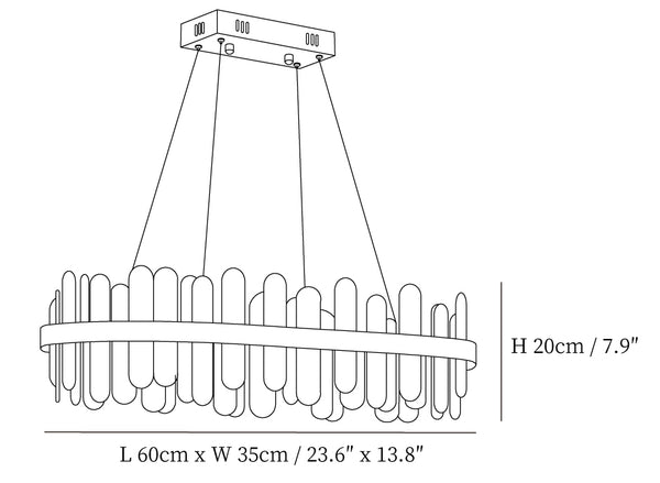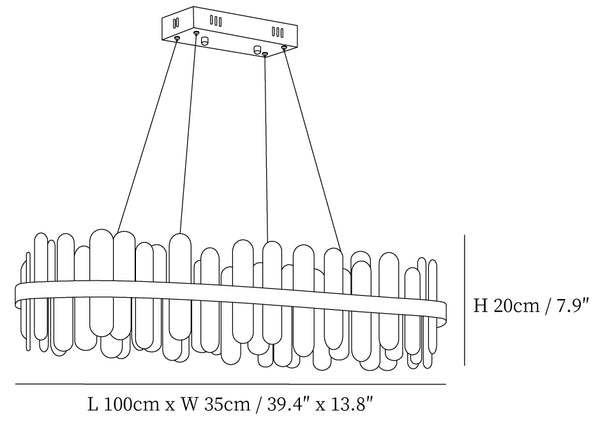 59″ Adjustable hanging height cable, which can be lengthened as required.