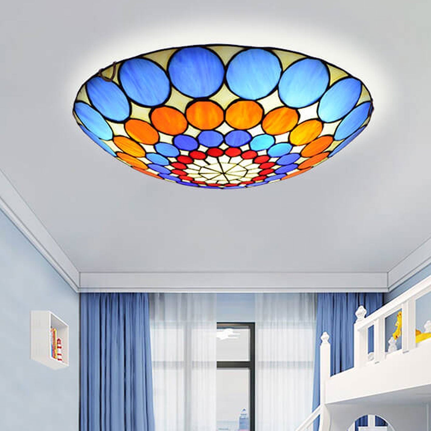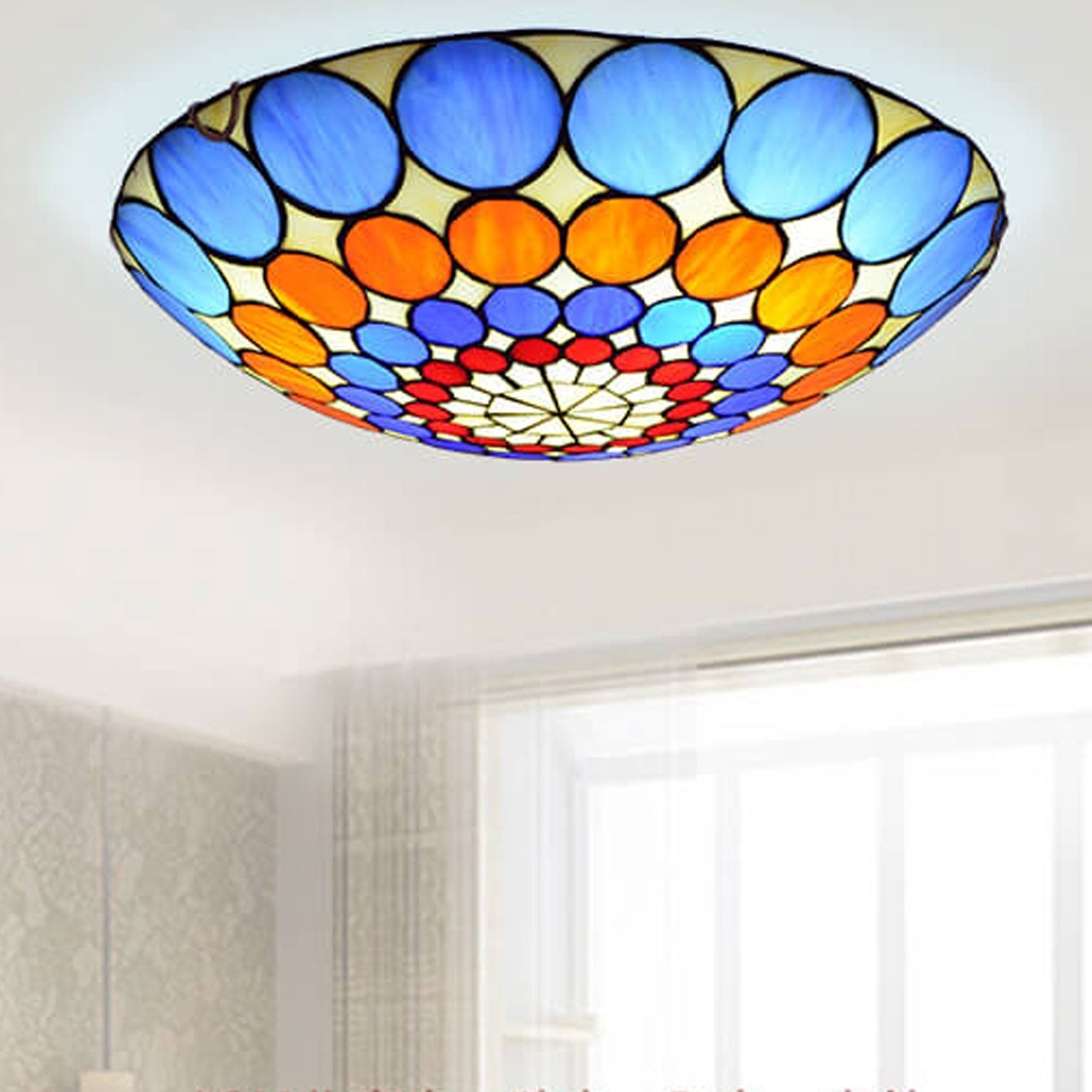 - Colorful Eryn Round Flush Mount Ceiling Light is available in the great variety of colors which transforms your room into an art space. Regardless of whether you choose the intersection and bright colors or the soft and muted pallet, the Colorful option will help you match your taste and preferences to the look and feel of your lighting unit.