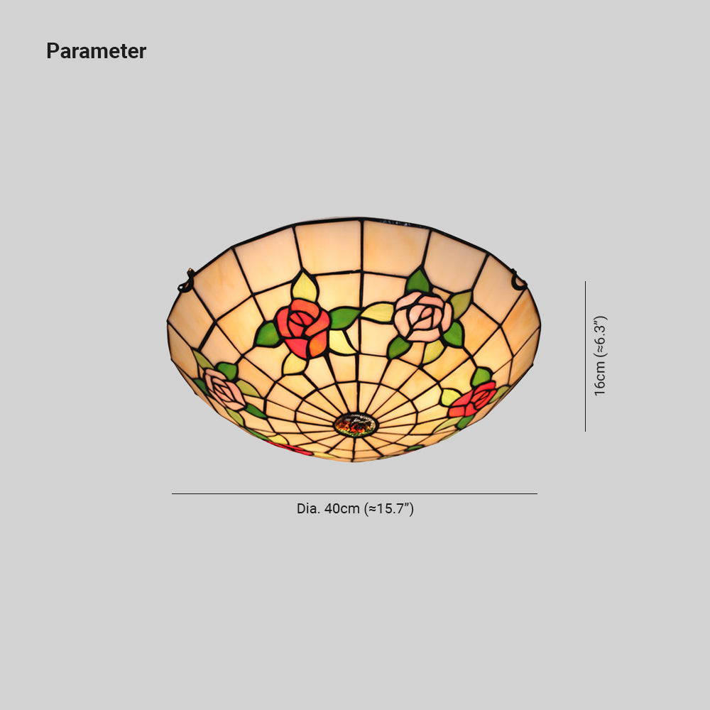 - Eryn Vintage Romantic Flush Mount Ceiling Light, according to the artisans, is made of the highest quality glass and guarantees durability, timelessness and elegance. The translucent appearance of the glasses enable the light to pass through on a soft and filtered manner, creating a comfortably a bright room. This ceiling light is made from durable materials and has a traditional style, so you can be confident it will endure any test throwing its way.