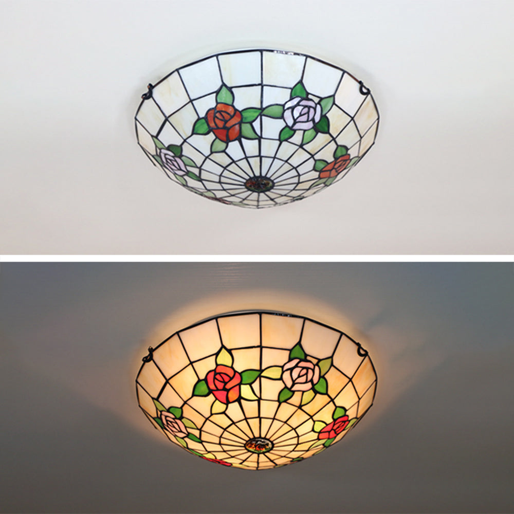- The Eryn Flush Mount Ceiling Light has a vintage inspired bowl shape which is quite charming, creating an elegant ambiance in your room. The soft, curved outline of the lamp design recalls fond memories and gives a romantic feel, allowing you to choose it to cozy the rooms in your house. Furthermore, the bowl-like design helps to spread the light evenly through the room, reducing the chances of dark spots giving a delicate and shadowless glow.