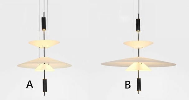 - B:Dia 68 cm x H 83 cm(Shades: Dia 36 cm + Dia 50 cm + Dia 68 cm + Dia 21.5 cm / ∅ 14.2''+ ∅ 19.7''+ ∅ 26.4''+ ∅ 8.5'')