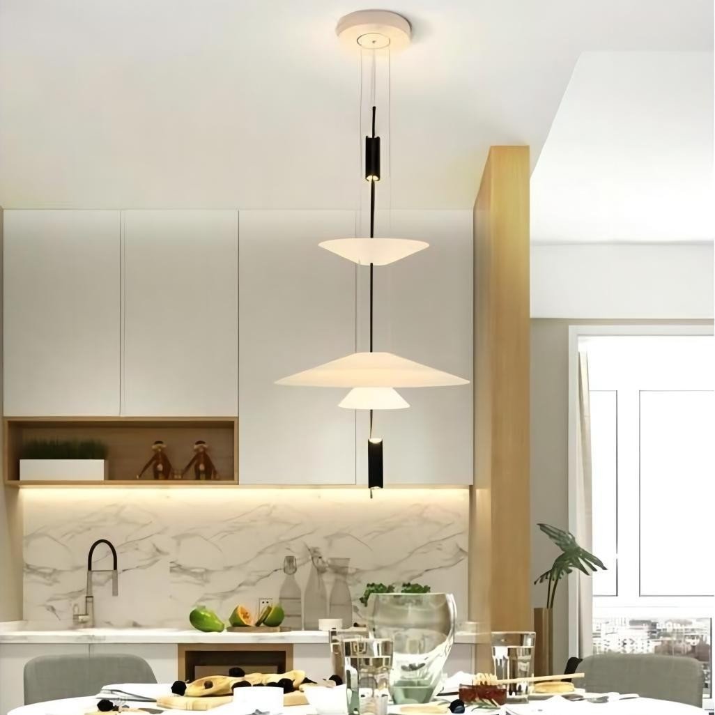 - A:Dia 68 cm x H 83 cm(Shades: Dia 36 cm + Dia 68 cm + Dia 36 cm + Dia 21.5 cm /∅ 14.2''+ ∅ 26.8''+ ∅ 14.2''+ ∅ 8.5'')