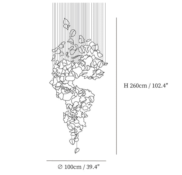 Our Flying Flowers Fluttering Chandelier offers a breathtakingly elegant aesthetic with its ivory glass petals that resemble fluttering petals descending gracefully from the light. Its luxuriously intricate design exudes a sophisticated and exclusive air, elevating the ambience of any interior.