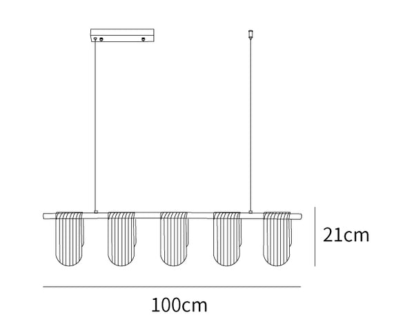 5 lamps Size: L 100cm x W 10cm x H 21cm / L 39.4″ x W 3.9″ x H 8.3″